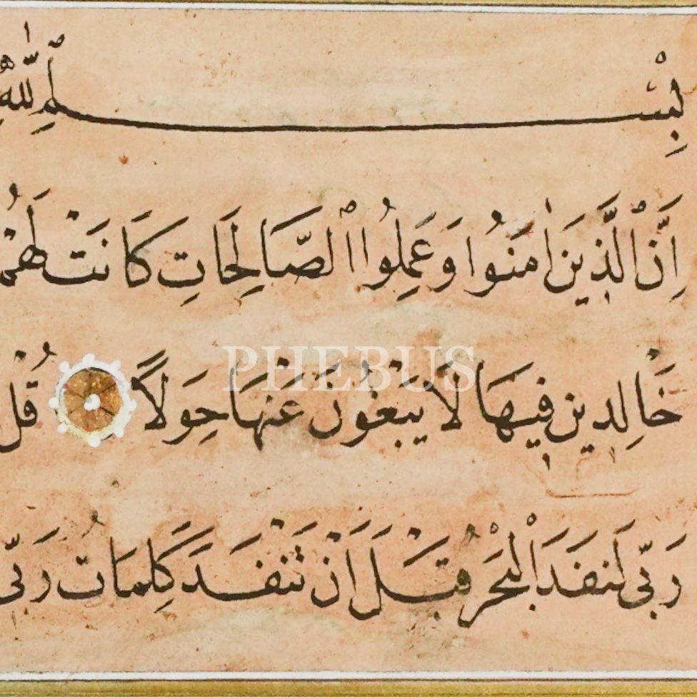 Osmanlı döneminden, nesih hat ile kaleme alınmış Kehf Suresi´nden ayetler, 18x14 cm...