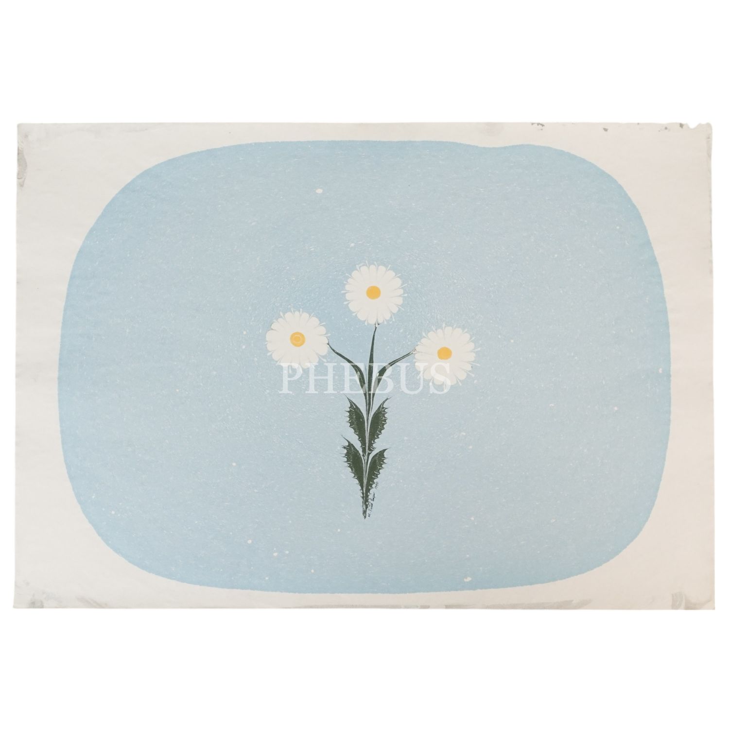 M. Fuat Başar imzalı papatya ebrusu, 1990, 34x50 cm...