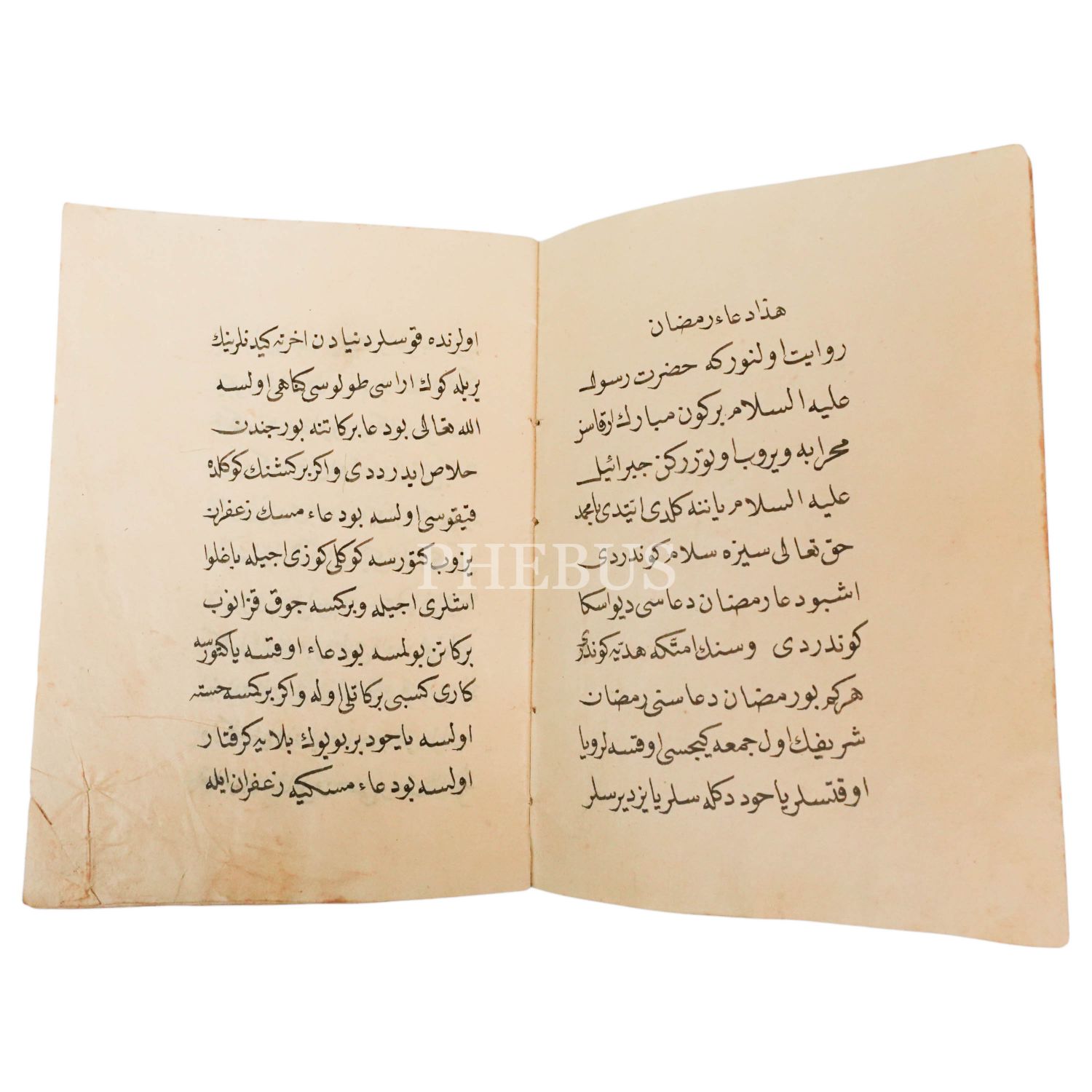 Ramazan Duası Risalesi, nesih yazı ile yazılmış, Avrupa baskısı ebru kap içindedir, 14 varağın 10´u doludur, 16x11 cm...