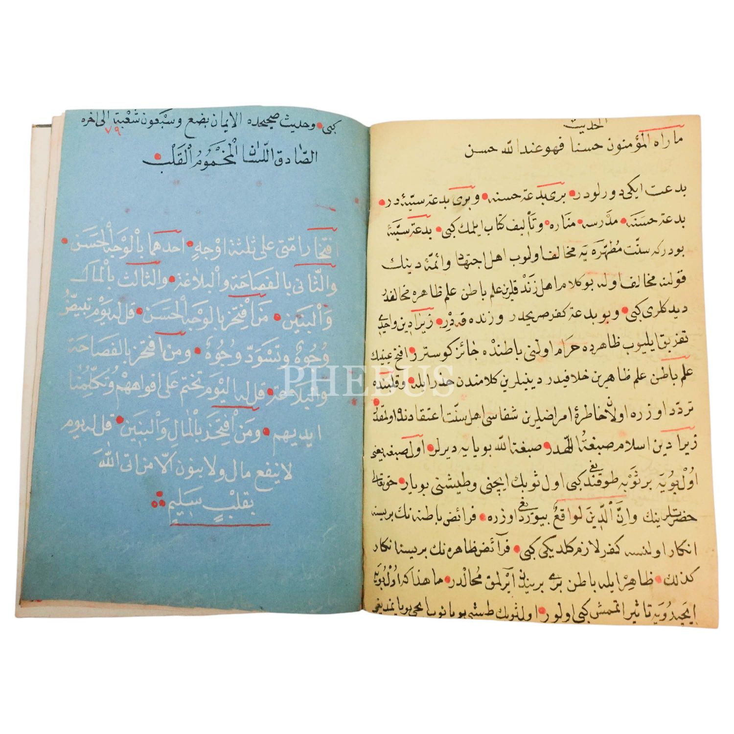 "Derununda âyât-ı celile ile ehâdîs-i nebeviyeden bazıları muharrer olduğu gibi birçok nafi sözler de mevcuddur. Meterviçeli Hacı Arif ihda eylemiştir. 20 Mart 1330" başlıklı mecmua, 22 varak, 19x13 cm...