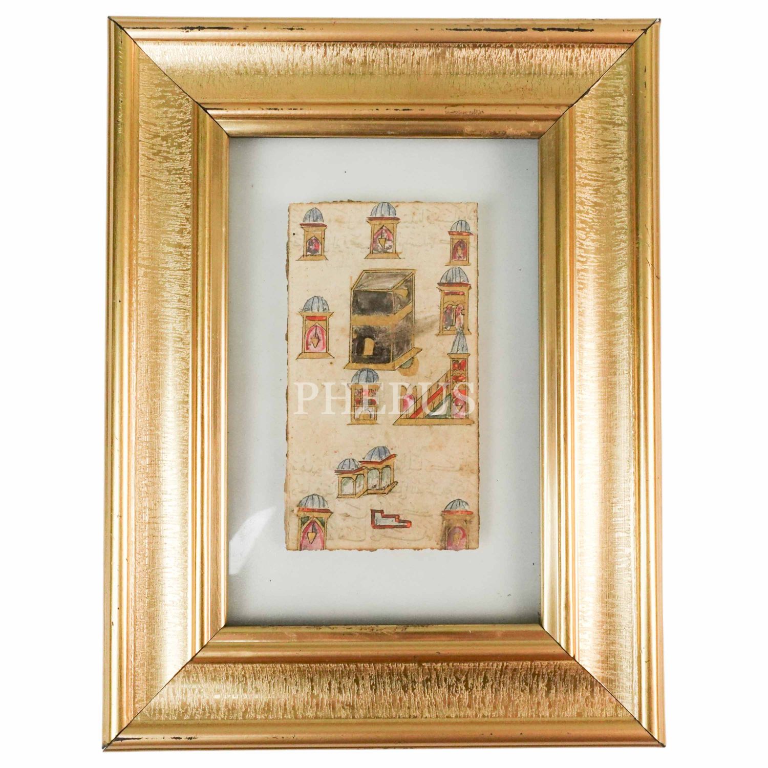 Osmanlı döneminden Kabe-i Muazzama tasviri, tasvir 6x11 cm, çerçeve 18x23 cm...