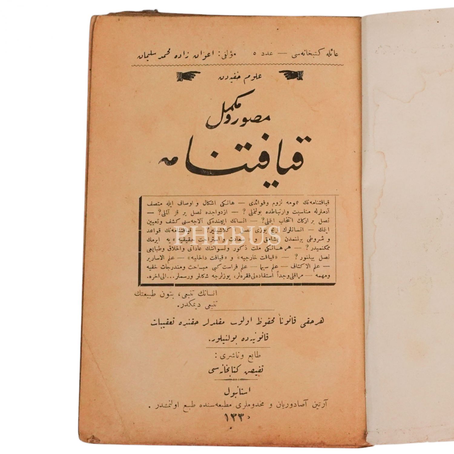 MUSAVVER VE MÜKEMMEL KIYAFETNAME, Avanzade M. Süleyman, 1330, Tefeyyüz Kütüphanesi, 192 sayfa, 12x18 cm...