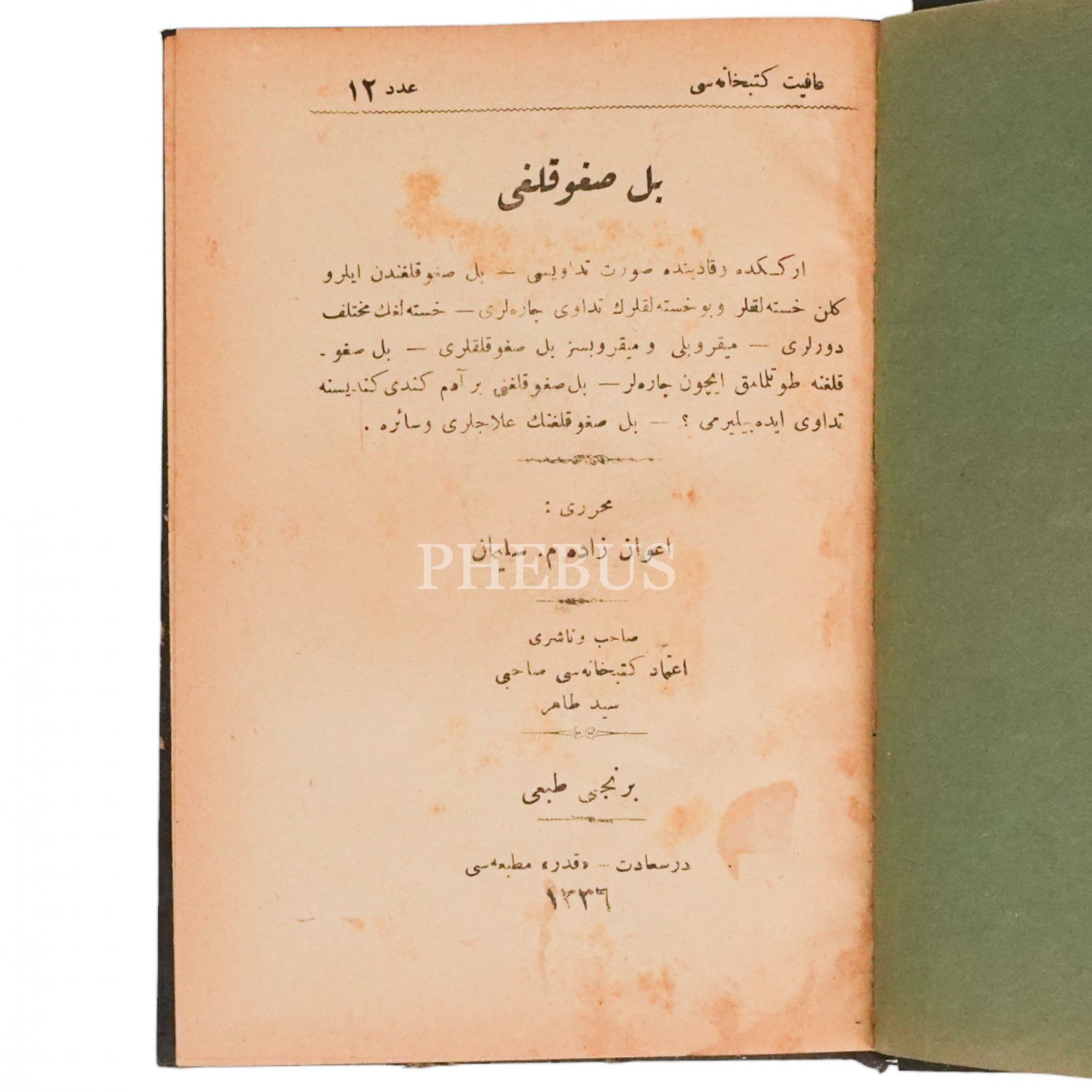 BEL SOĞUKLUĞU, Avanzade M. Süleyman, 1336, Kader Matbaası, 136 sayfa, 14x20 cm..
