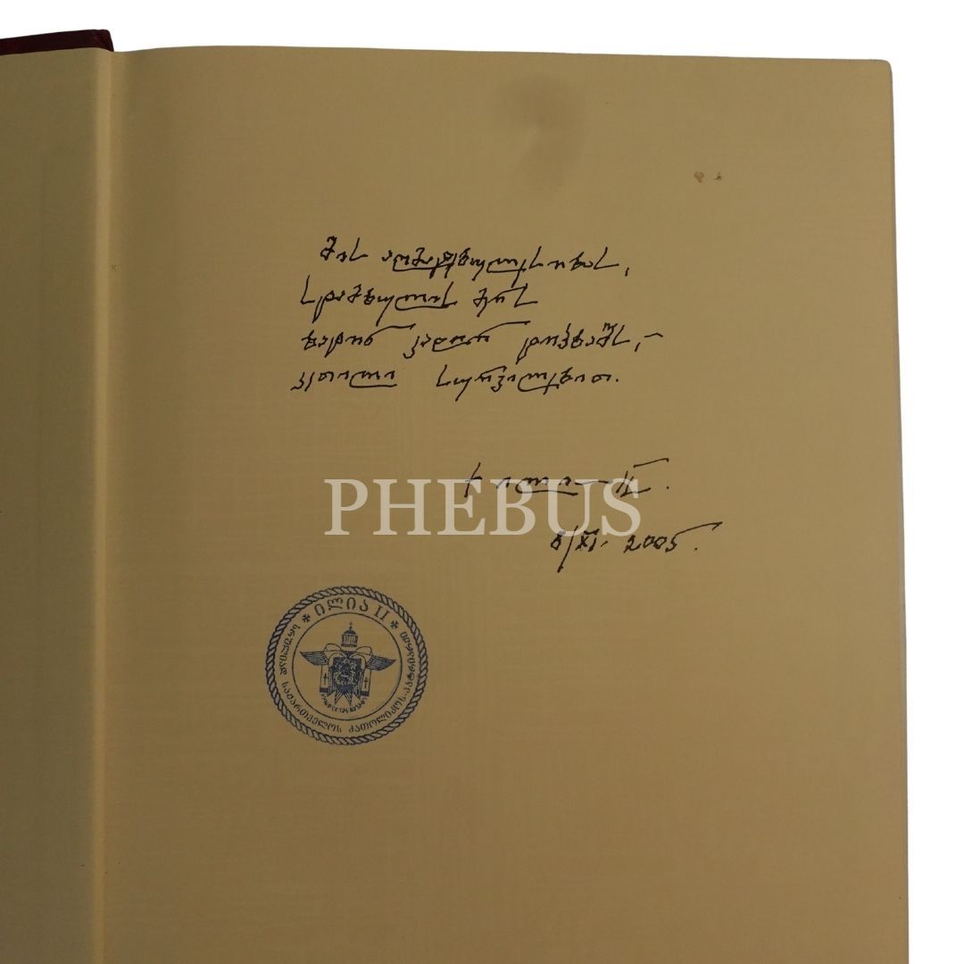 Kitabın başında yer alan 2005 tarihli Gürcüce ithaf, Kadir Topbaş'a hitaben kaleme alınmıştır. Sayfa kenarları altın yaldızlıdır.