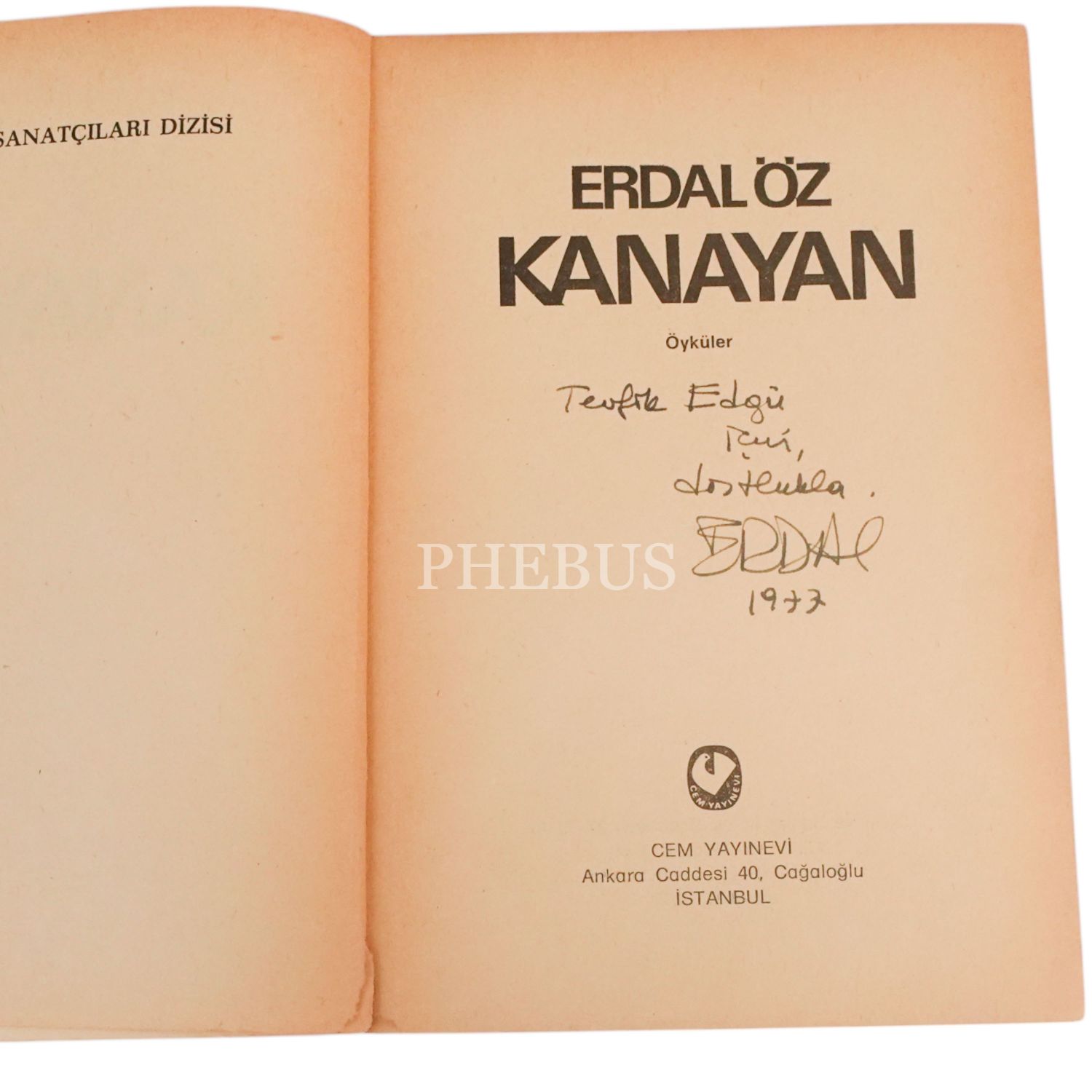 "Tevfik Edgü için, dostlukla." ithafıyla, 1977 yılında imzalanmıştır.