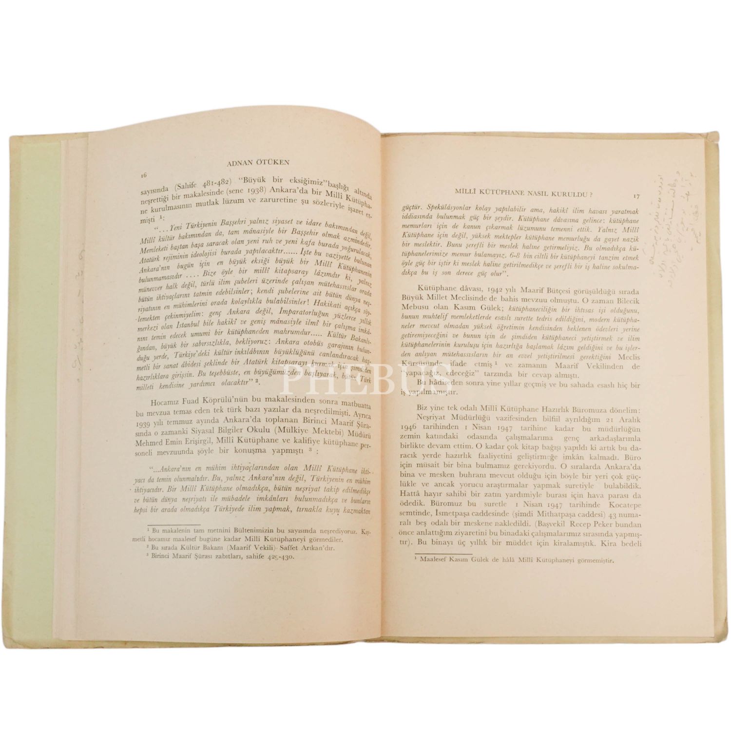 MİLLÎ KÜTÜPHANE NASIL KURULDU?, Adnan Ötüken, 1955, Türk Tarih Kurumu Basımevi, 40 sayfa metin + fotoğraflar, 17x25 cm...