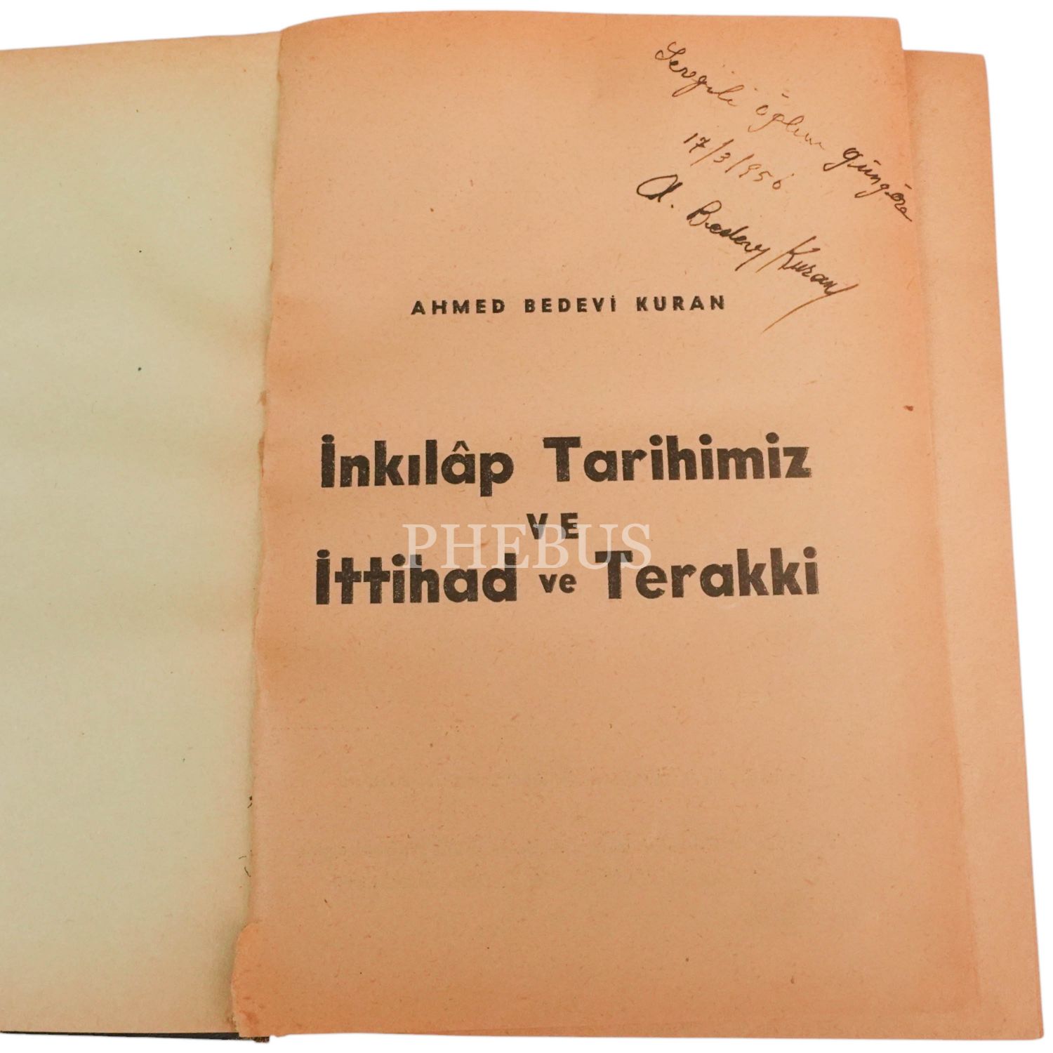 İNKILÂP TARİHİMİZ VE İTTİHAD VE TERAKKİ, Ahmed Bedevi Kuran, 1948, Tan Matbaası, 319 sayfa, 17x23 cm...