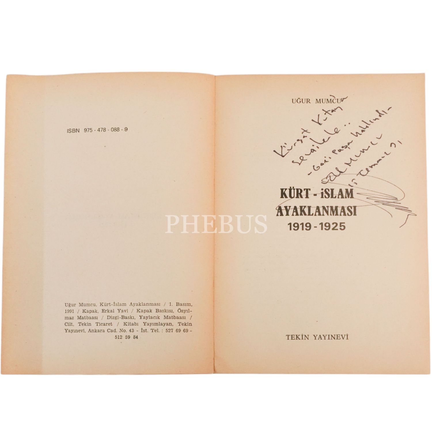 KÜRT - İSLAM AYAKLANMASI (1919-1925), Uğur Mumcu, 1991, Tekin Yayınevi, 268 sayfa, 14x20 cm...