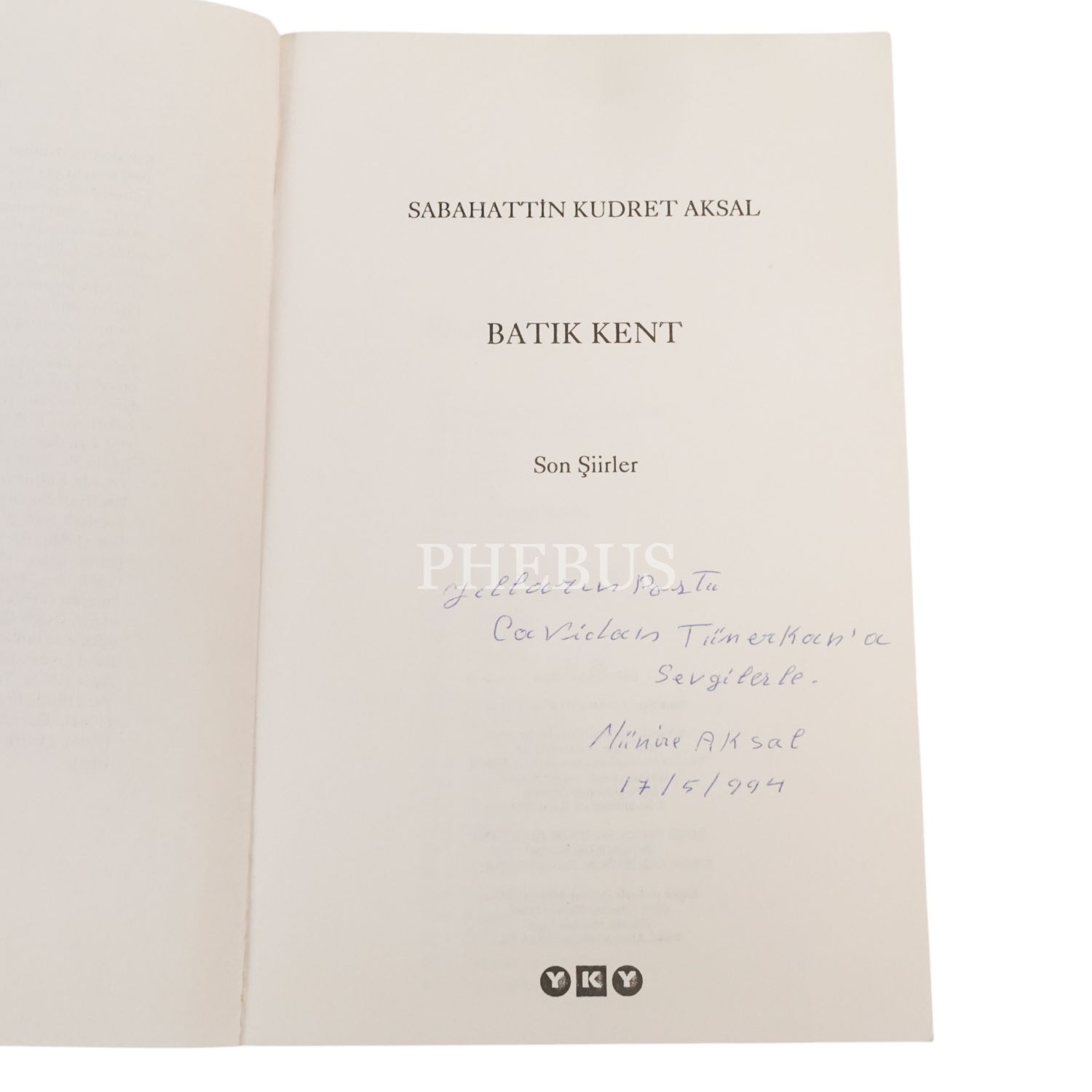 BATIK KENT (Son Şiirler), Sabahattin Kudret Aksal, 1994, Yapı Kredi Yayınları, 132 sayfa, 14x21 cm...