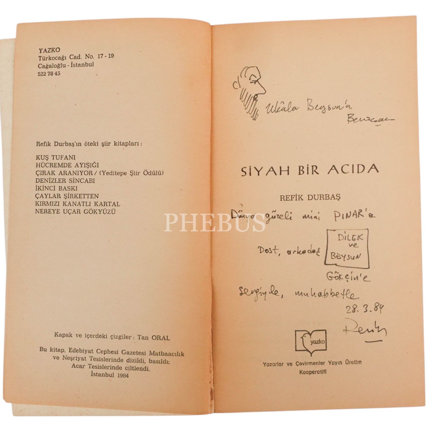 "Dünya güzeli mini Pınar´a - Dost, arkadaş Dilek ve Beysun Gökçin´e sevgiyle, muhabbetle." ithafıyla, 28 Mart 1984 tarihinde imzalanmıştır.