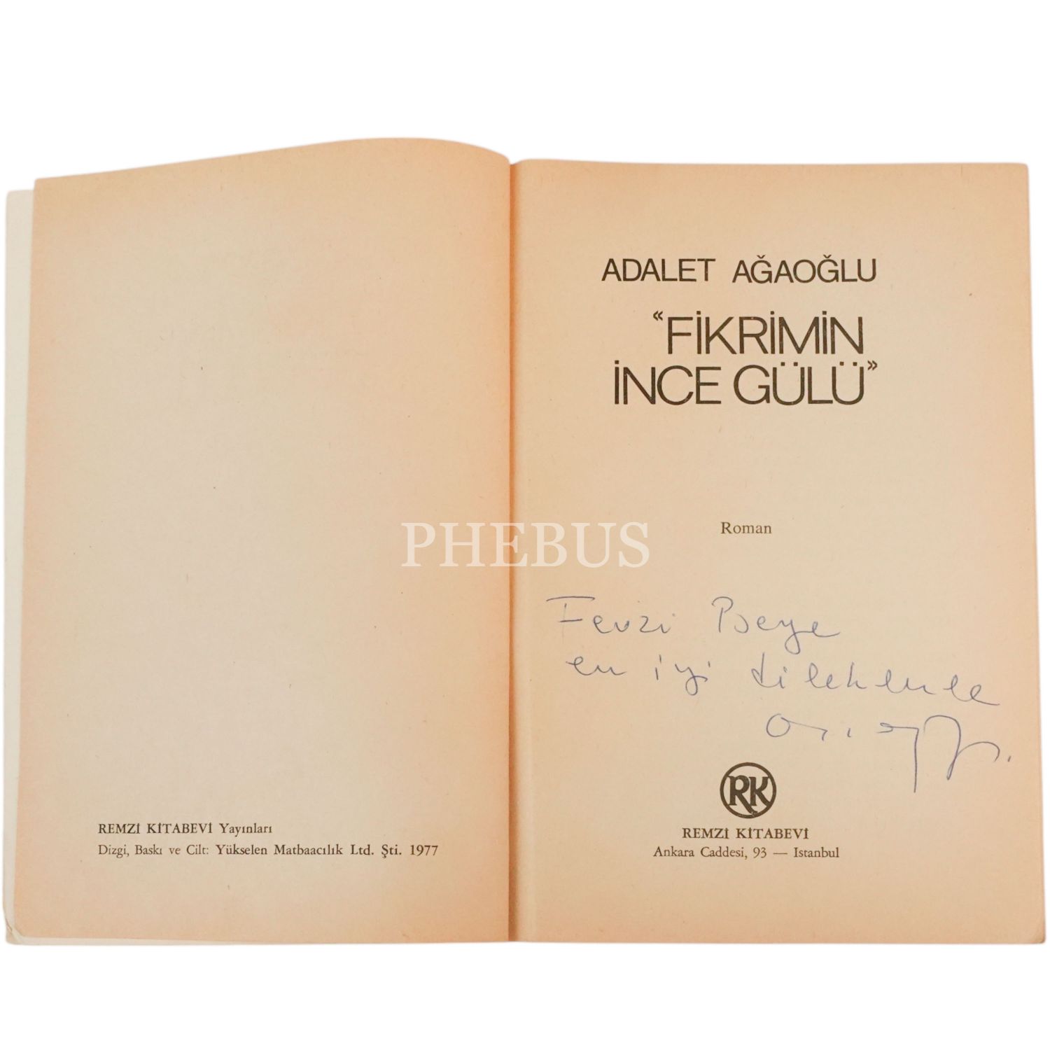 "FİKRİMİN İNCE GÜLÜ", Adalet Ağaoğlu, 1977, Remzi Kitabevi, 325 sayfa, 14x20 cm...
