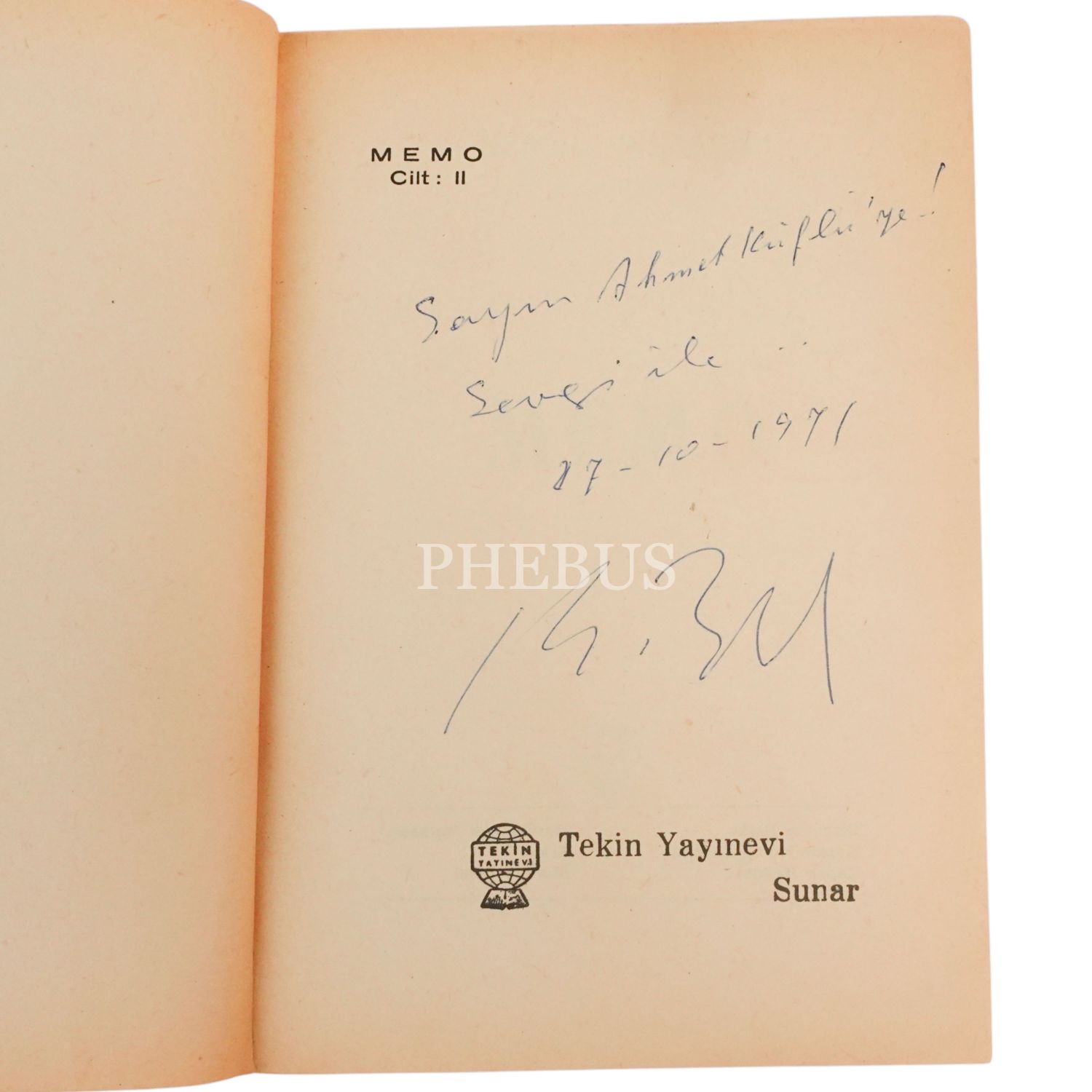 "Sayın Ahmet Küflü´ye! Sevgi ile..." ithafıyla, 27 Ekim 1971 tarihinde imzalanmıştır.