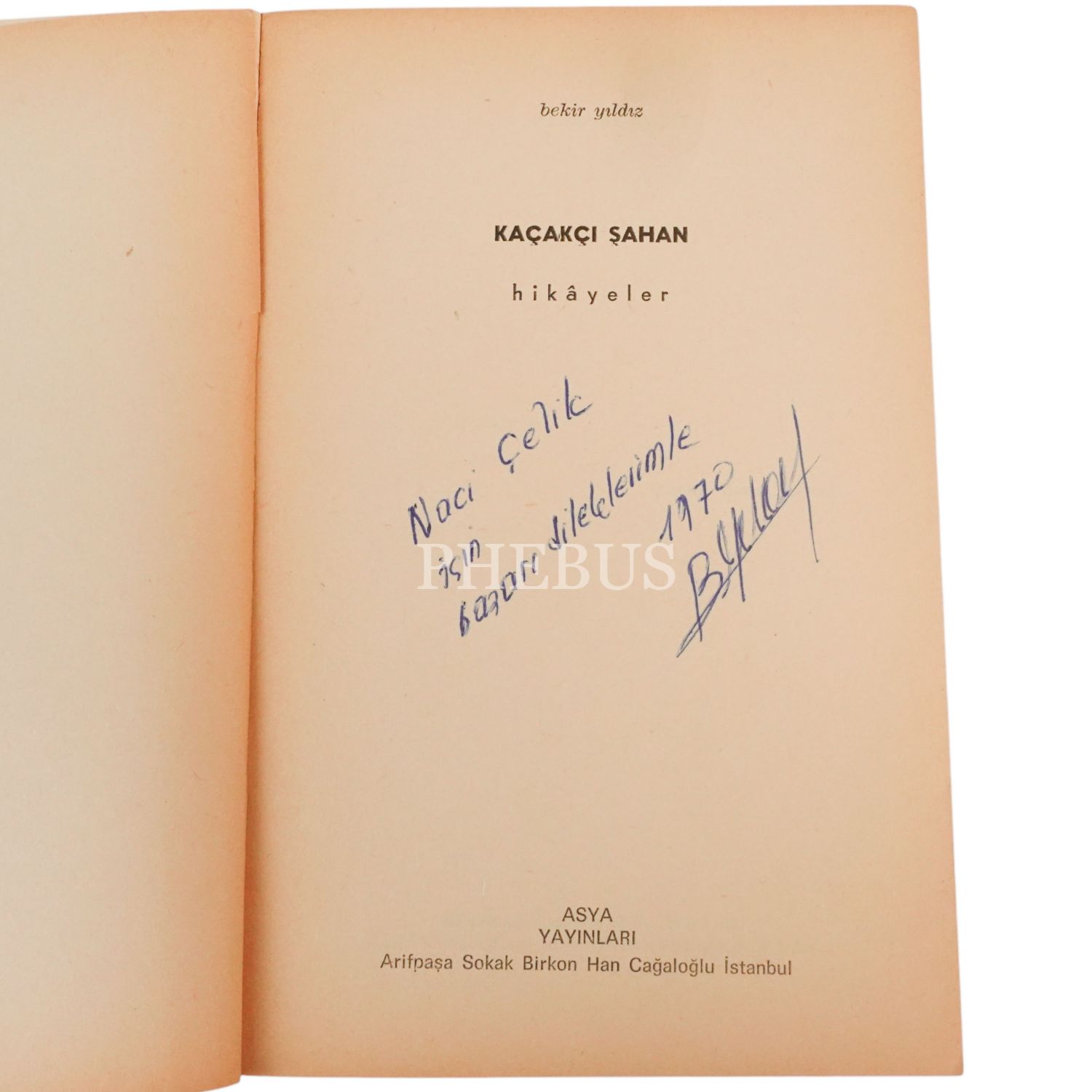 "Naci Çelik için başarı dileklerimle." ithafıyla, 1970 yılında imzalanmıştır.