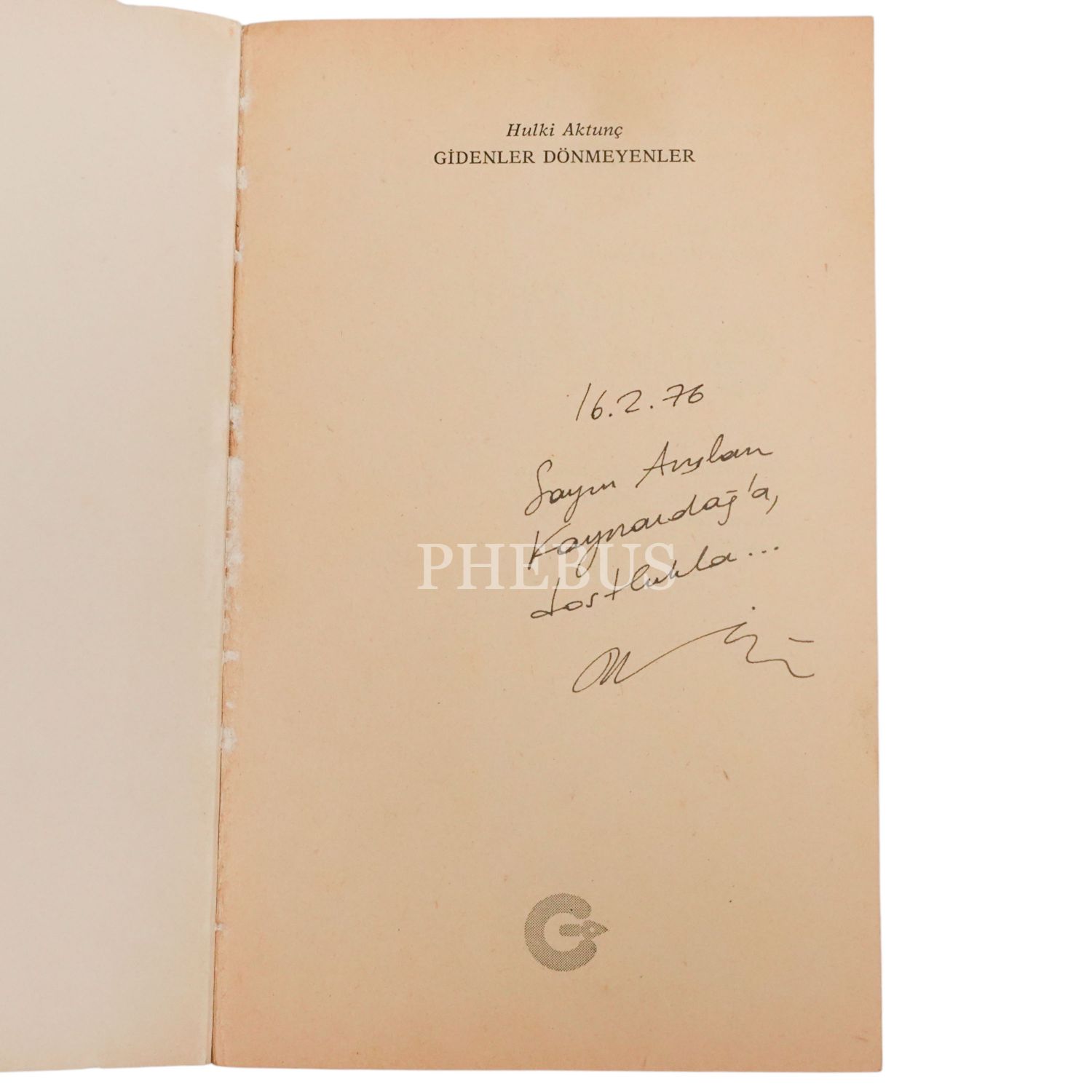 "Sayın Arslan Kaynardağ´a, dostlukla..." ithafıyla, 16 Şubat 1976 tarihinde imzalanmıştır. Kapak: Said Maden