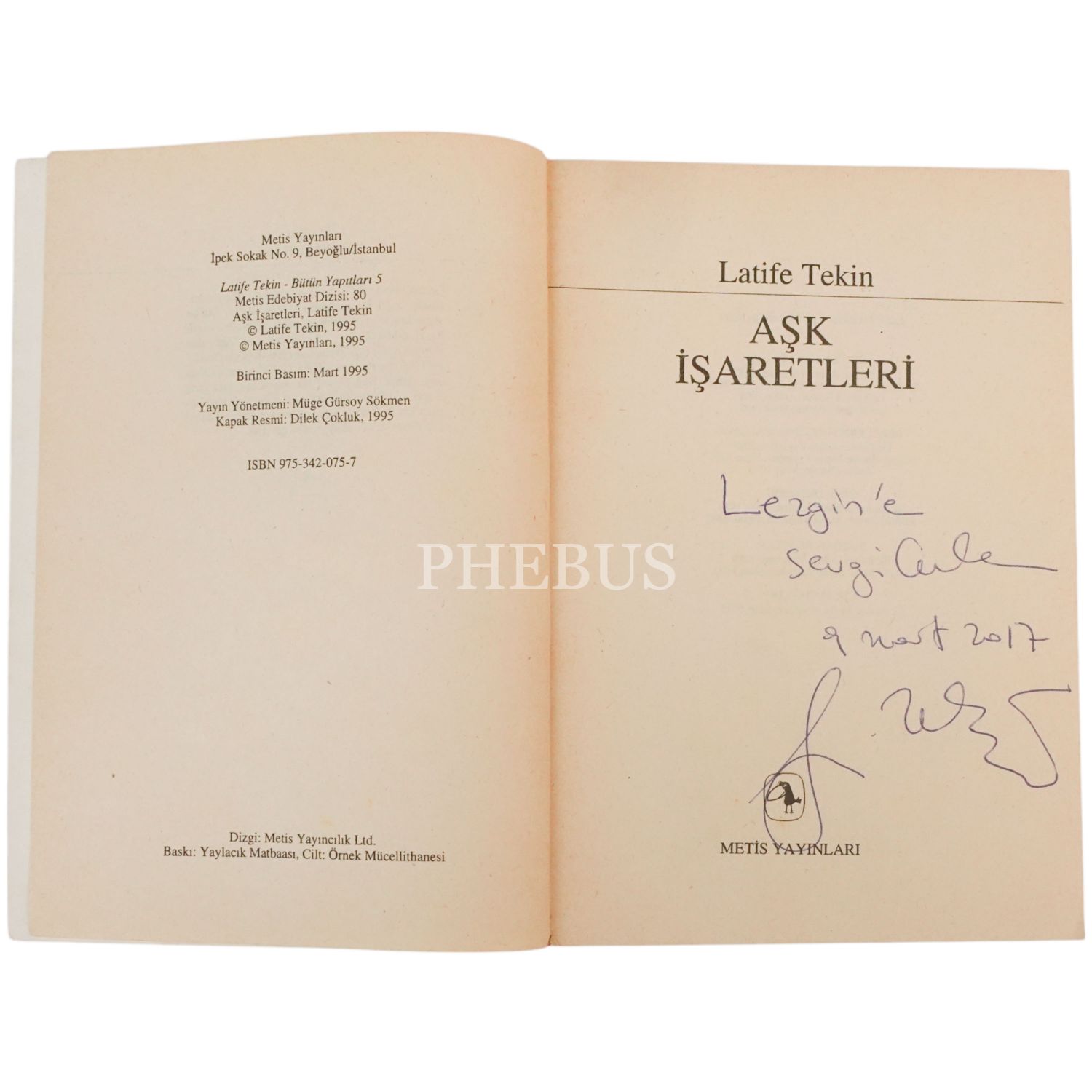 "Sezgin´e sevgilerle." ithafıyla, 9 Mart 2017 tarihinde imzalanmıştır.