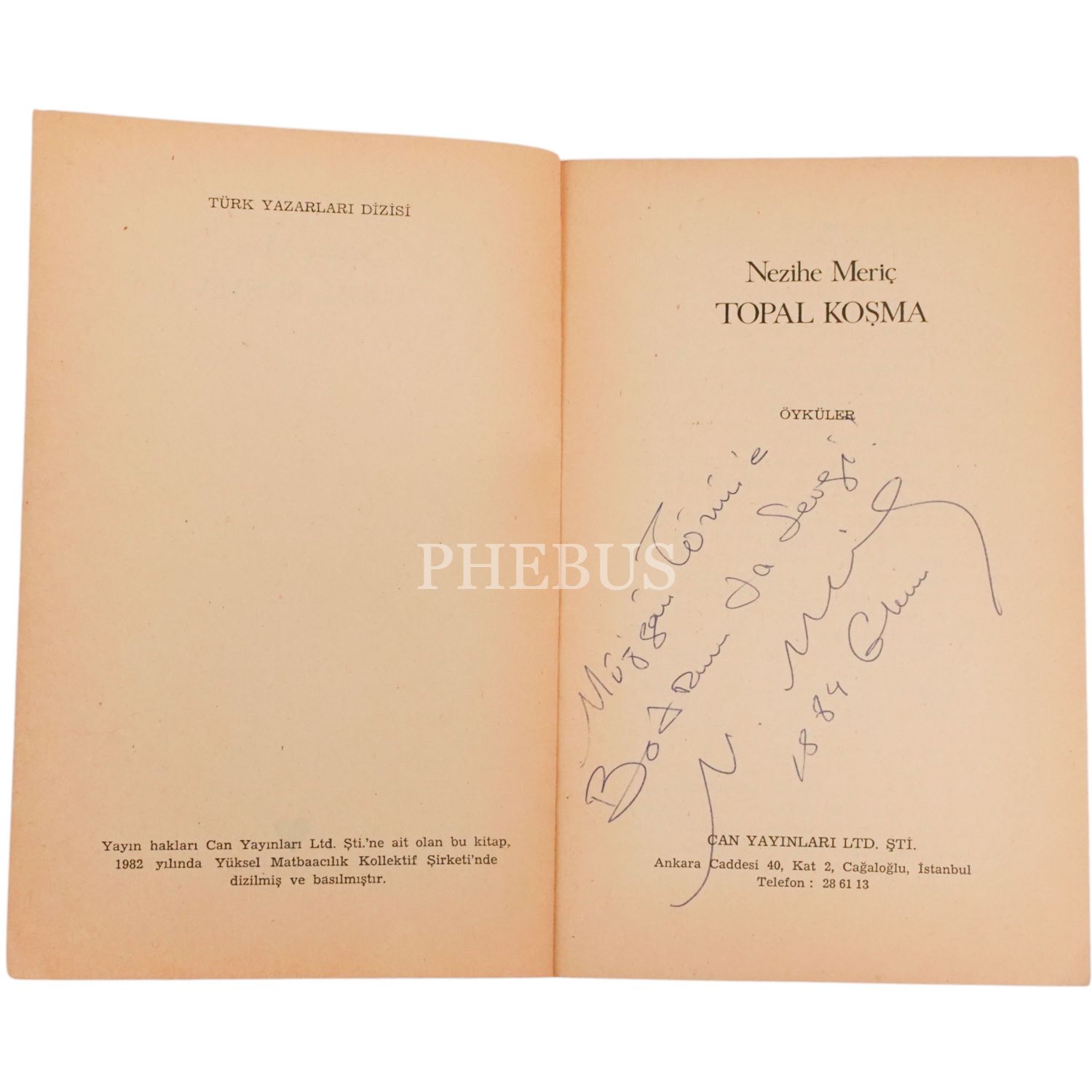 "Müjgân T...´e Bodrum ... sevgi." ithafıyla, Ekim 1984 tarihinde imzalanmıştır.