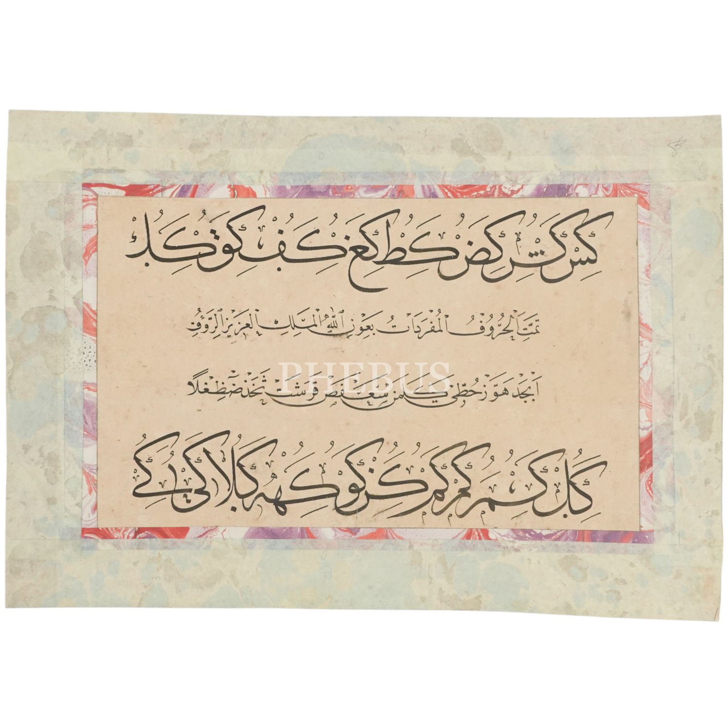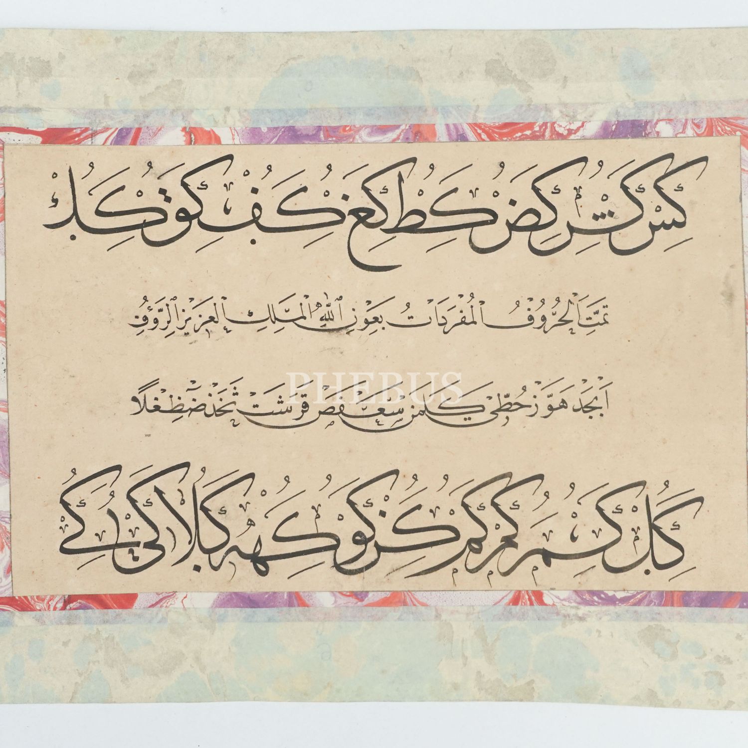 Bakkal Arif Efendi´ye ait imzasız sülüs-nesih meşk, 29x21 cm...