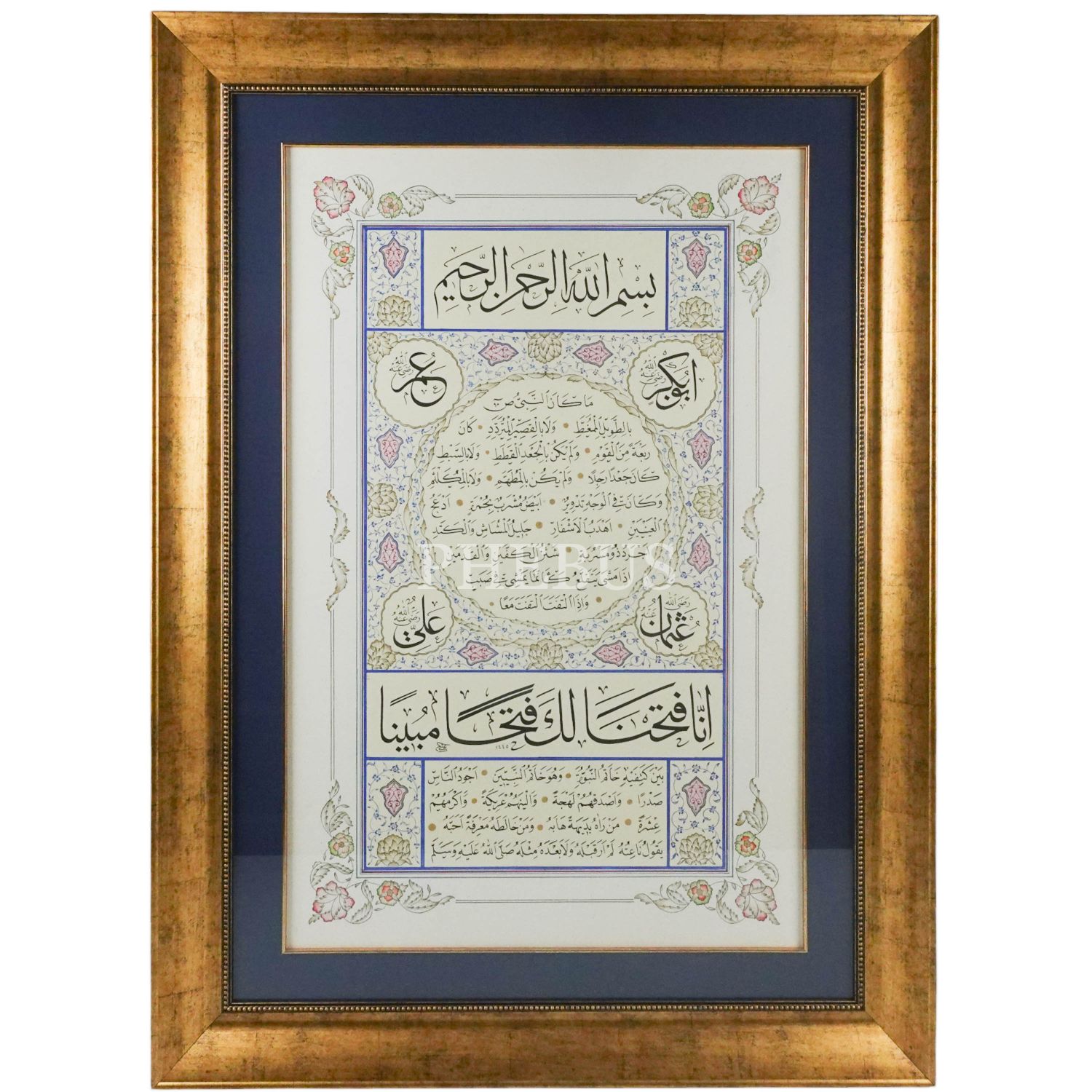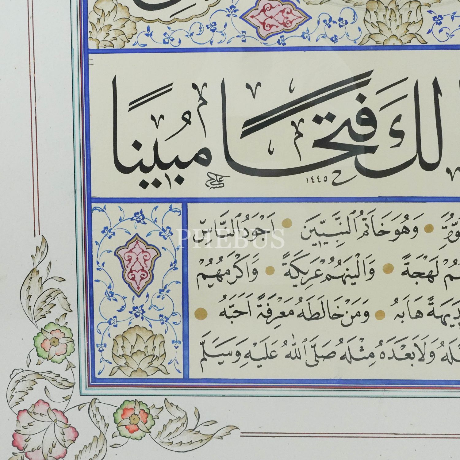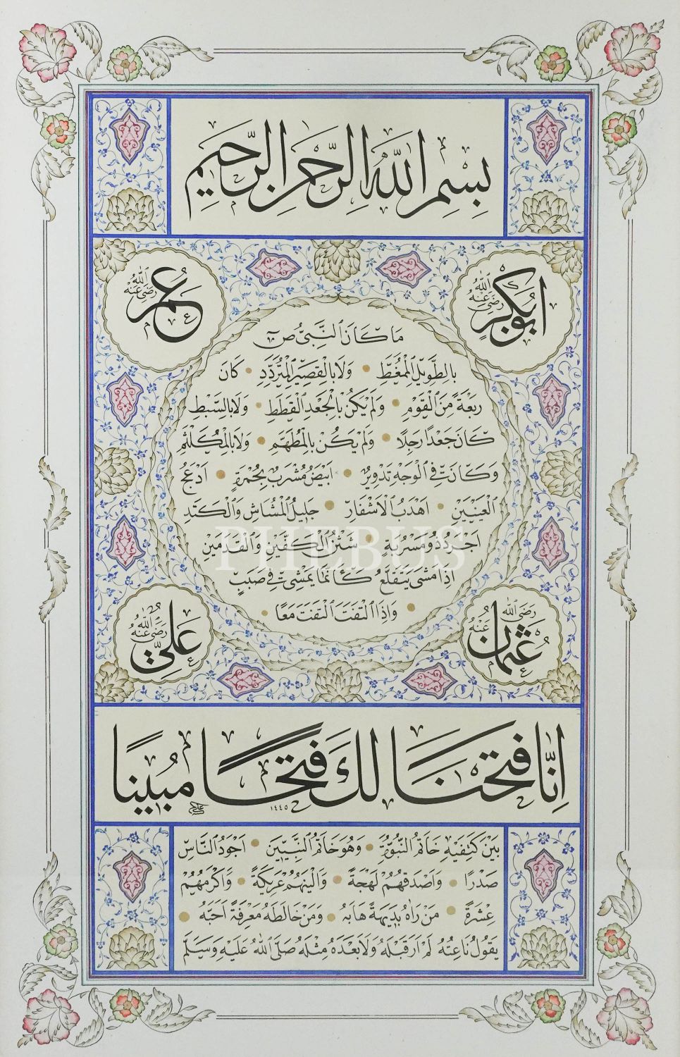 Ali Hüsrevoğlu Hilye-i Şerife, 1445 tarihli, çerçeve ölçü: 115x84 cm....