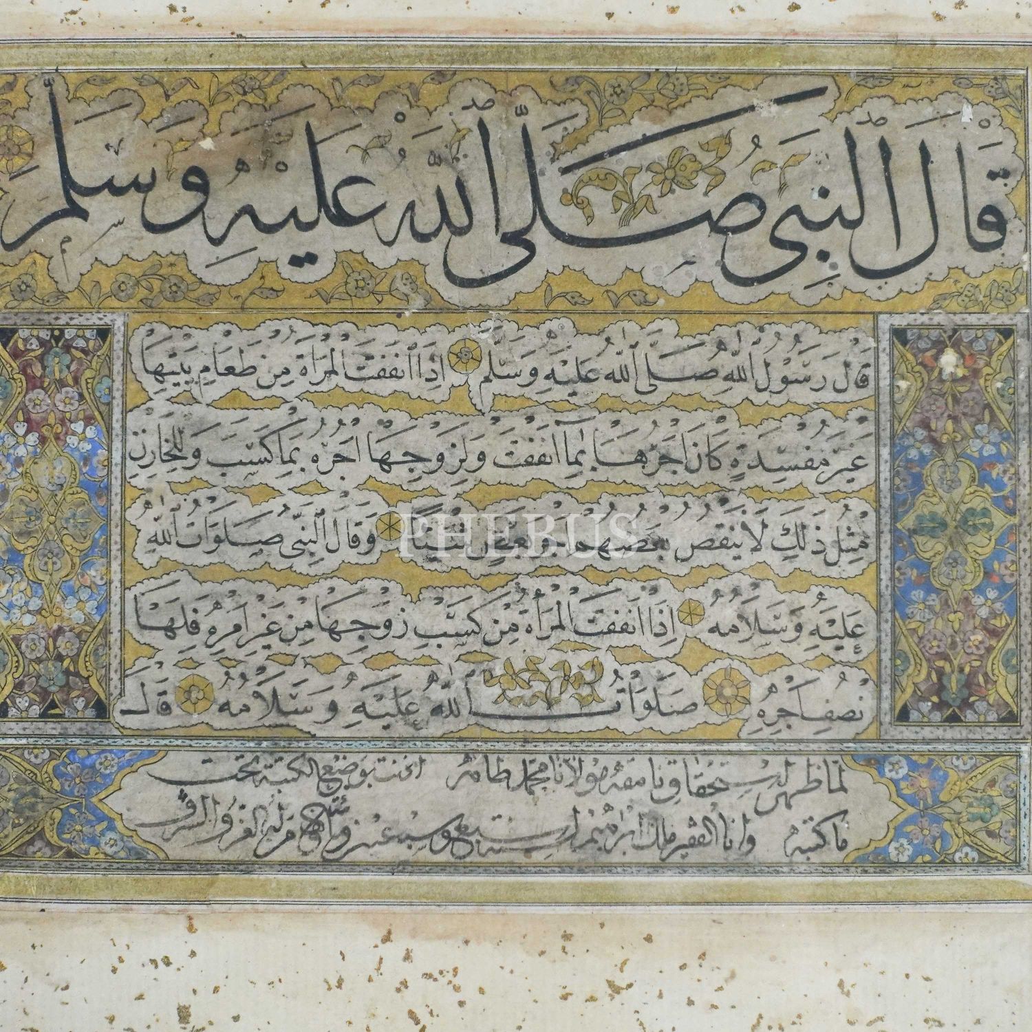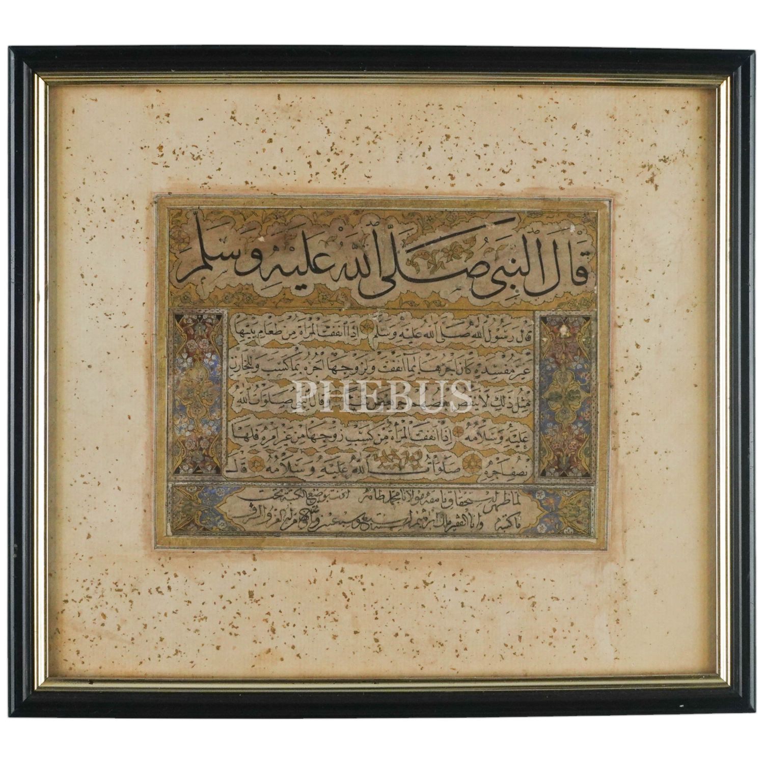 Sülüs-nesih icazetname, altın cetvelli, tezhipli ve pervazı zerefşanlı, yazı ölçü: 16x12 cm, çerçeve ölçü: 26x24 cm...