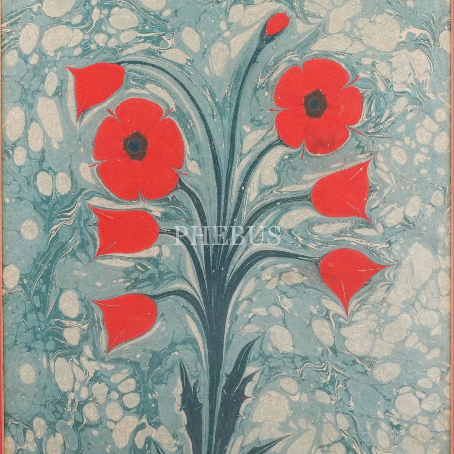 Mustafa Düzgünman imzalı çiçek ebrusu, çerçeve ölçü: 49x61 cm...