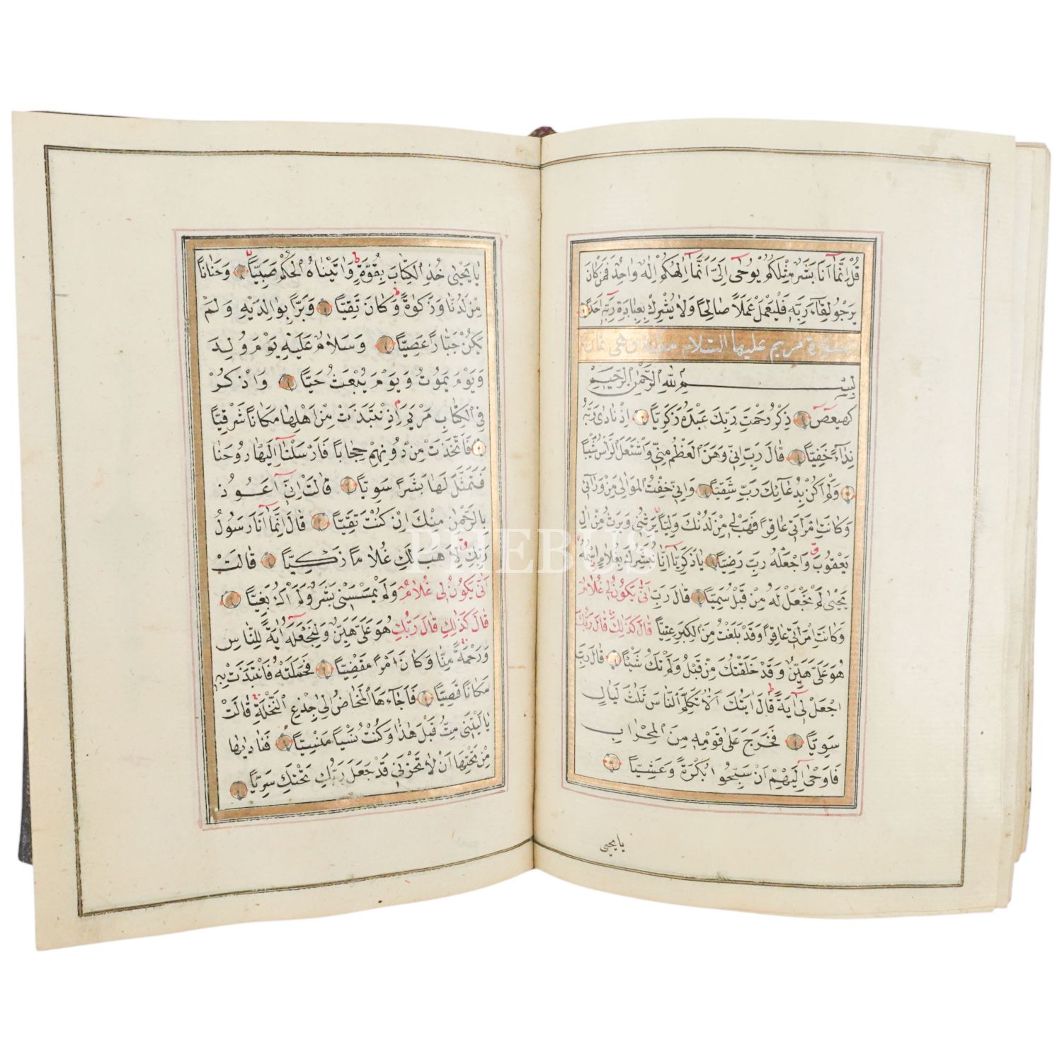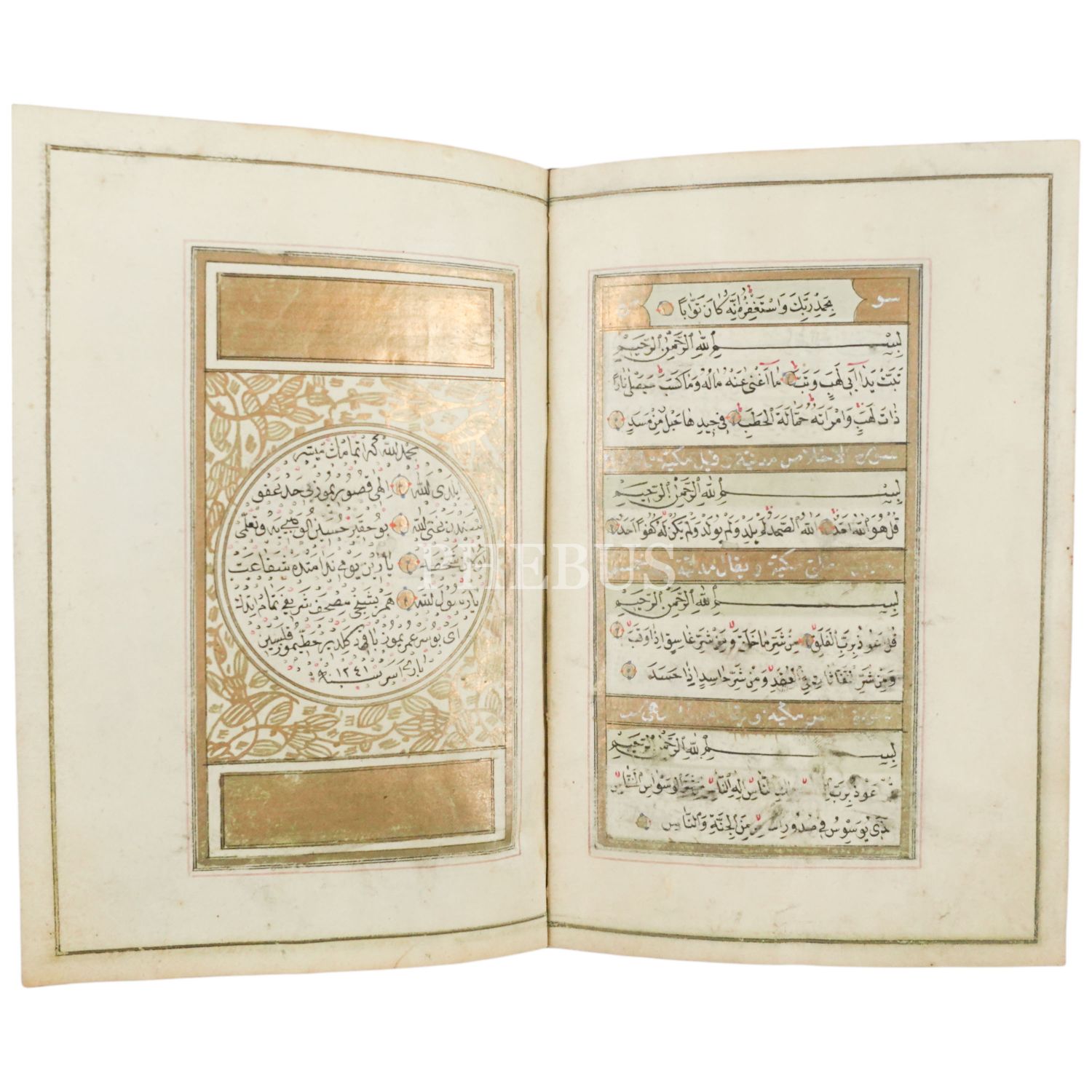 Eser; serlevhalı, tüm sayfaları tahrirli altın cetvelli ve altın duraklı, sure başları altın levhalı, ketebe sayfası tezyinatlı ve deri dönem cildi içindedir.