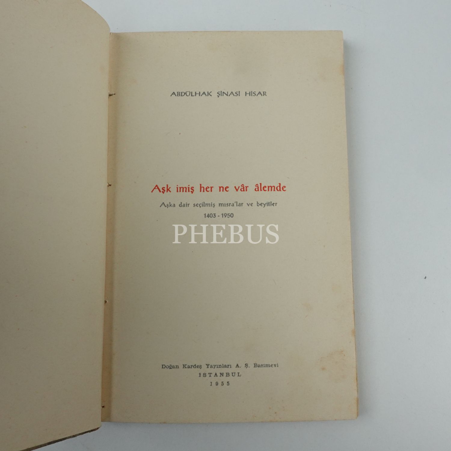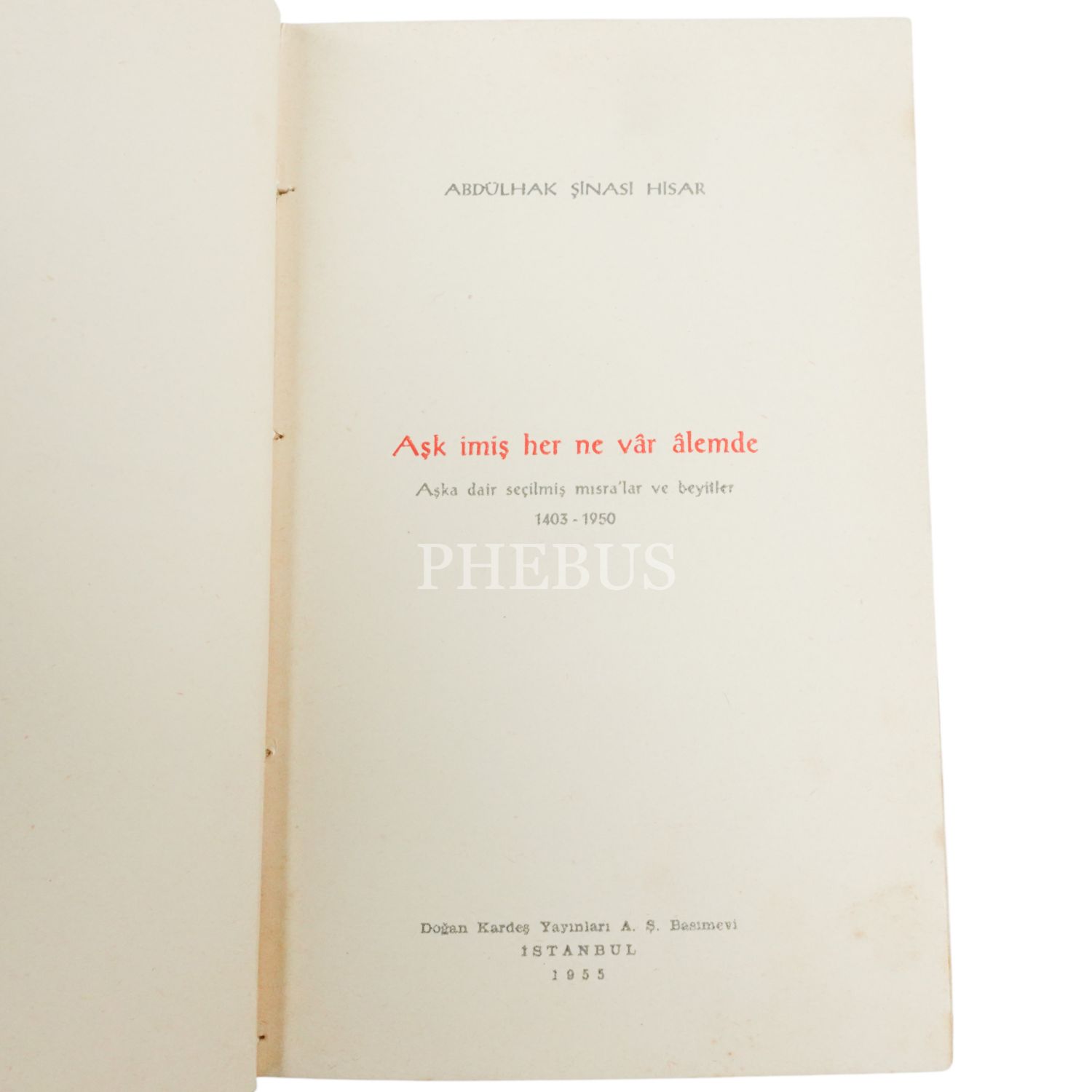 AŞK İMİŞ HER NE VÂR ÂLEMDE, Abdülhak Şinasi Hisar, 1955, Doğan Kardeş Yayınları A.Ş. Basımevi, 99 sayfa...