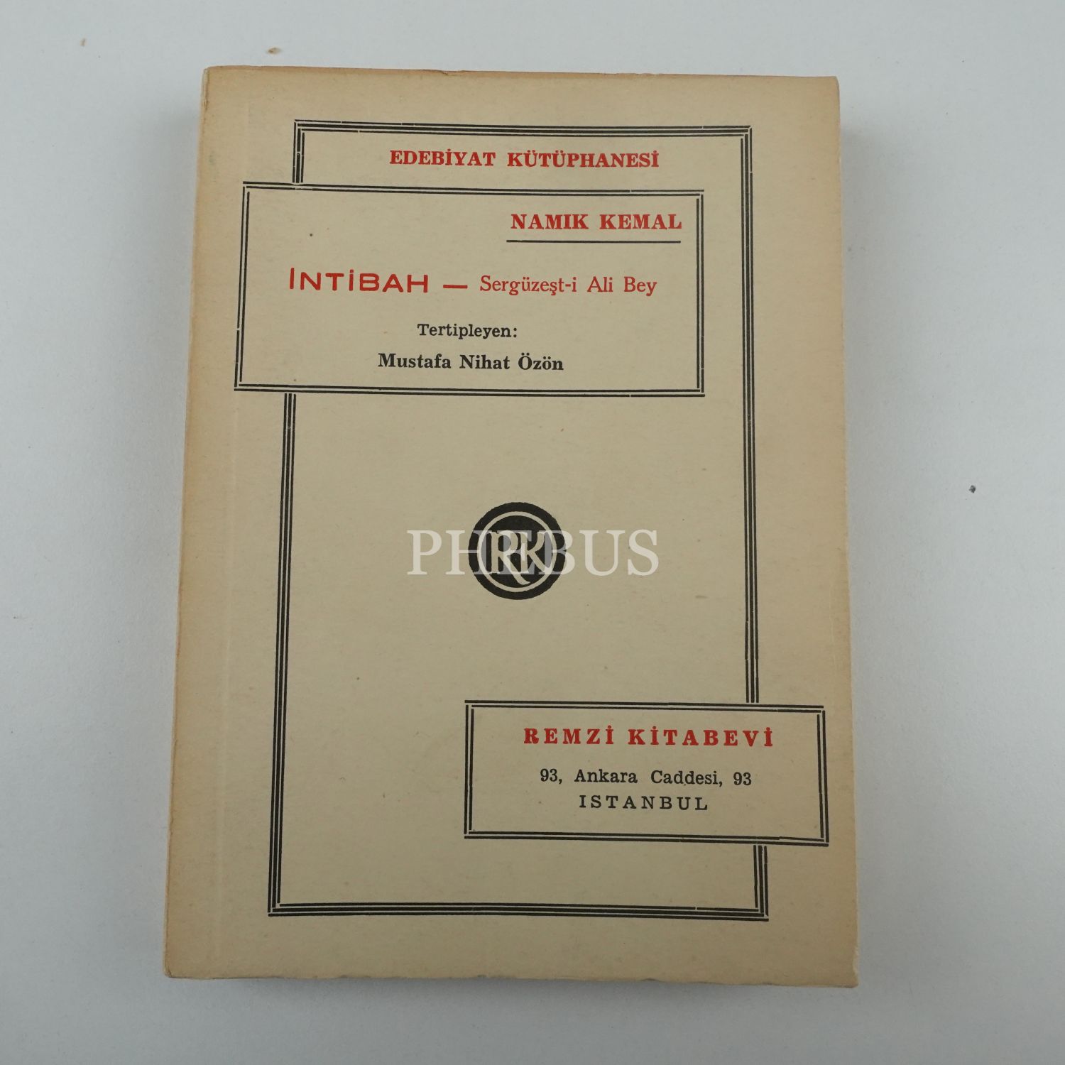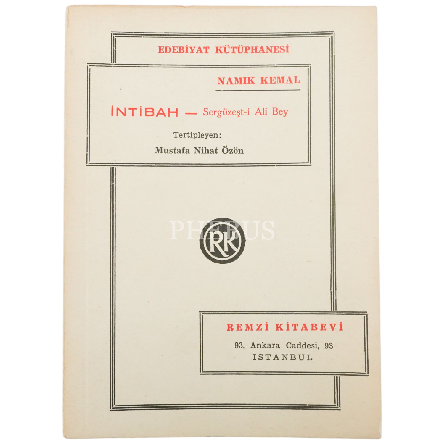 İNTİBAH (Sergüzeşt-i Ali Bey), Namık Kemal, (tertipleyen: Mustafa Nihat Özön), 1971, Remzi Kitabevi, 234 sayfa...