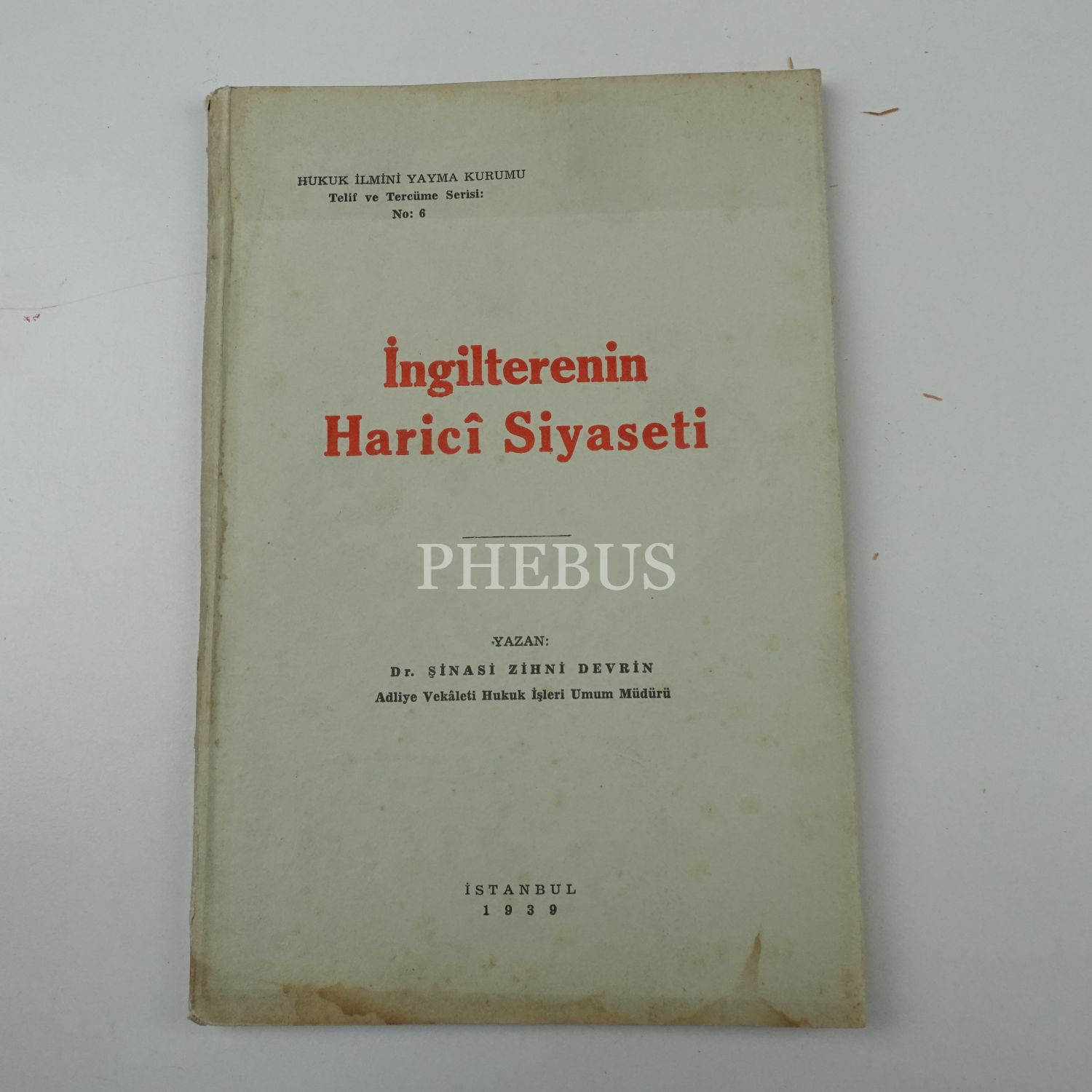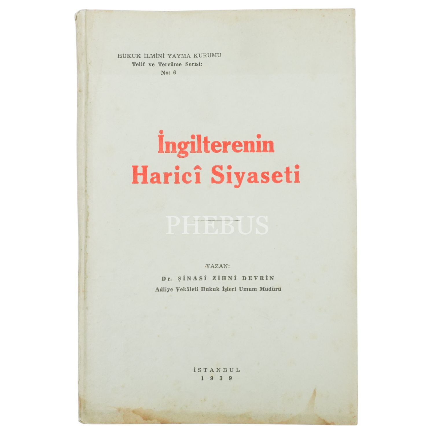 İNGİLTERENİN HARİCÎ SİYASETİ, Şinasi Zihni Devrin, 1939, Hukuk İlmini Yayma Kurumu, 100 sayfa...
