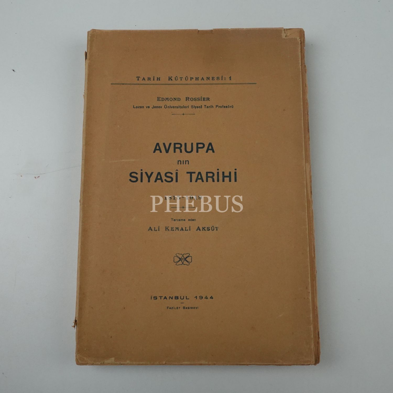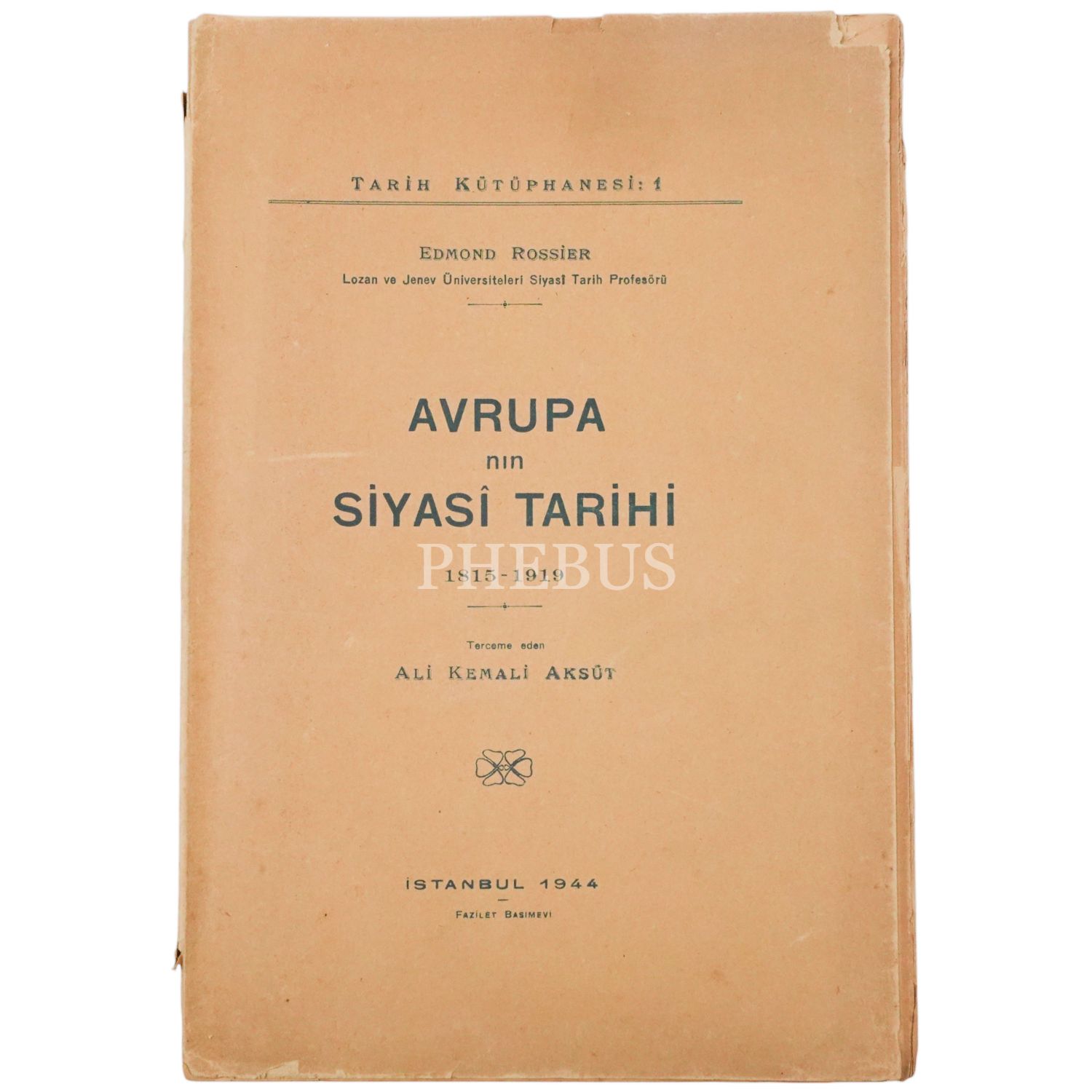 AVRUPA´NIN SİYASÎ TARİHİ (1815-1919), Edmond Rossier, (tercüme eden: Ali Kemali Aksüt), 1944, Fazilet Basımevi, 326 sayfa...