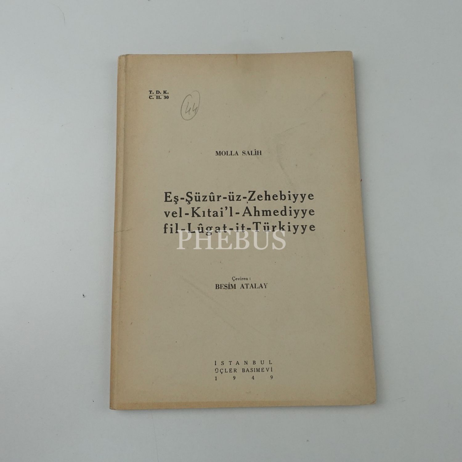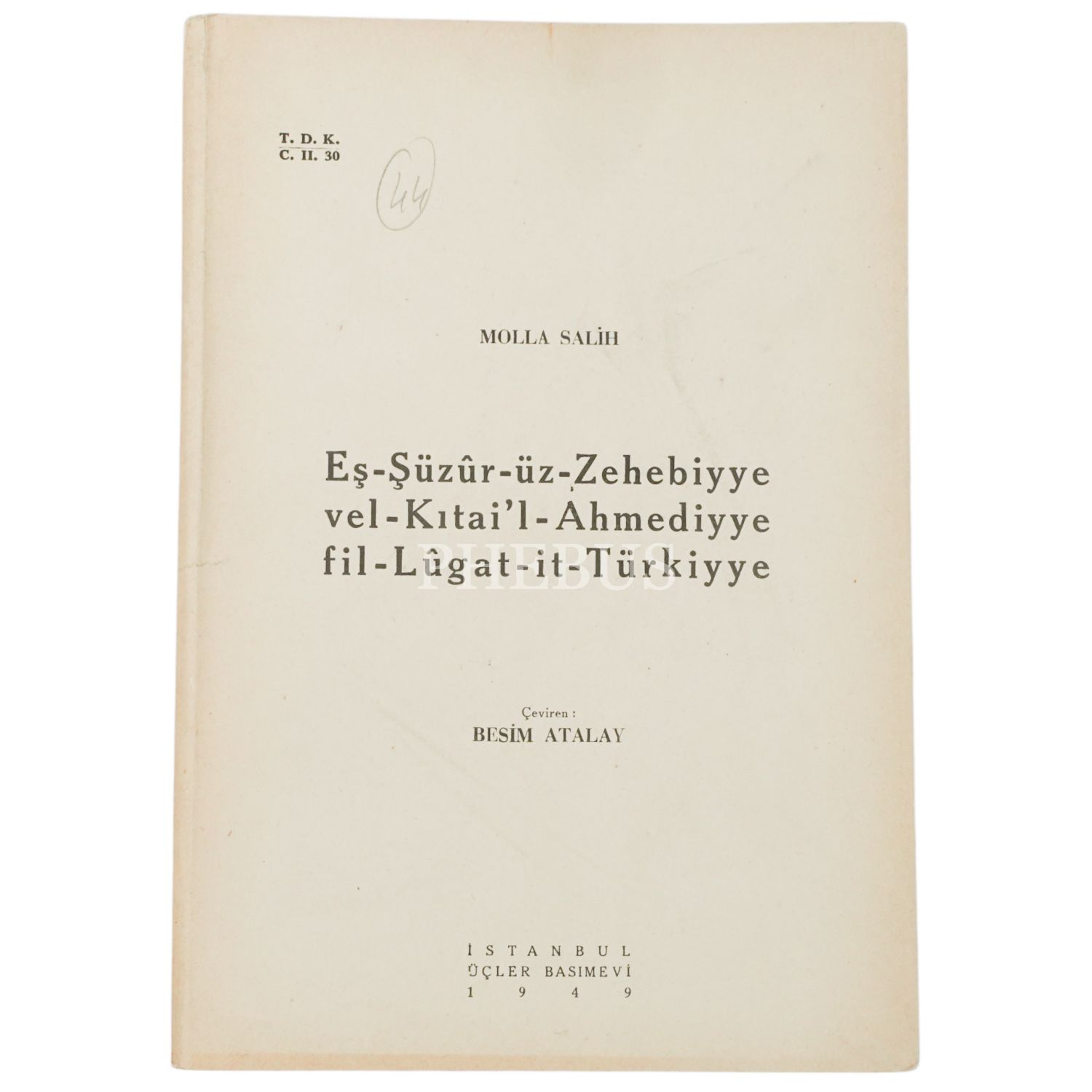 EŞ-ŞÜZÛR-ÜZ-ZEHEBİYYE VEL-KITAİ´L-AHMEDİYYE FİL-LÛGAT-İT-TÜRKİYYE, Molla Salih, (çeviren: Besim Atalay), 1949, Üçler Basımevi, 70 sayfa...