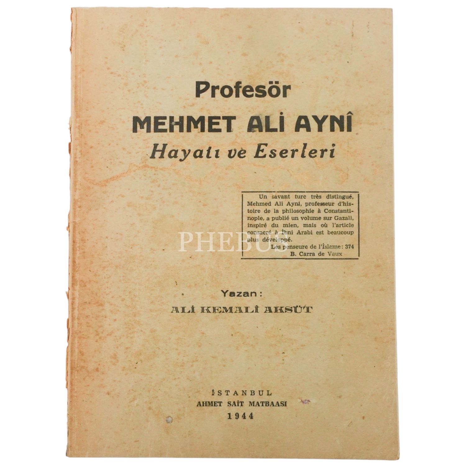 PROFESÖR MEHMET ALİ AYNÎ (Hayatı ve Eserleri), (yazan: Ali Kemalî Aksüt), 1944, Ahmet Sait Matbaası, 344 sayfa...