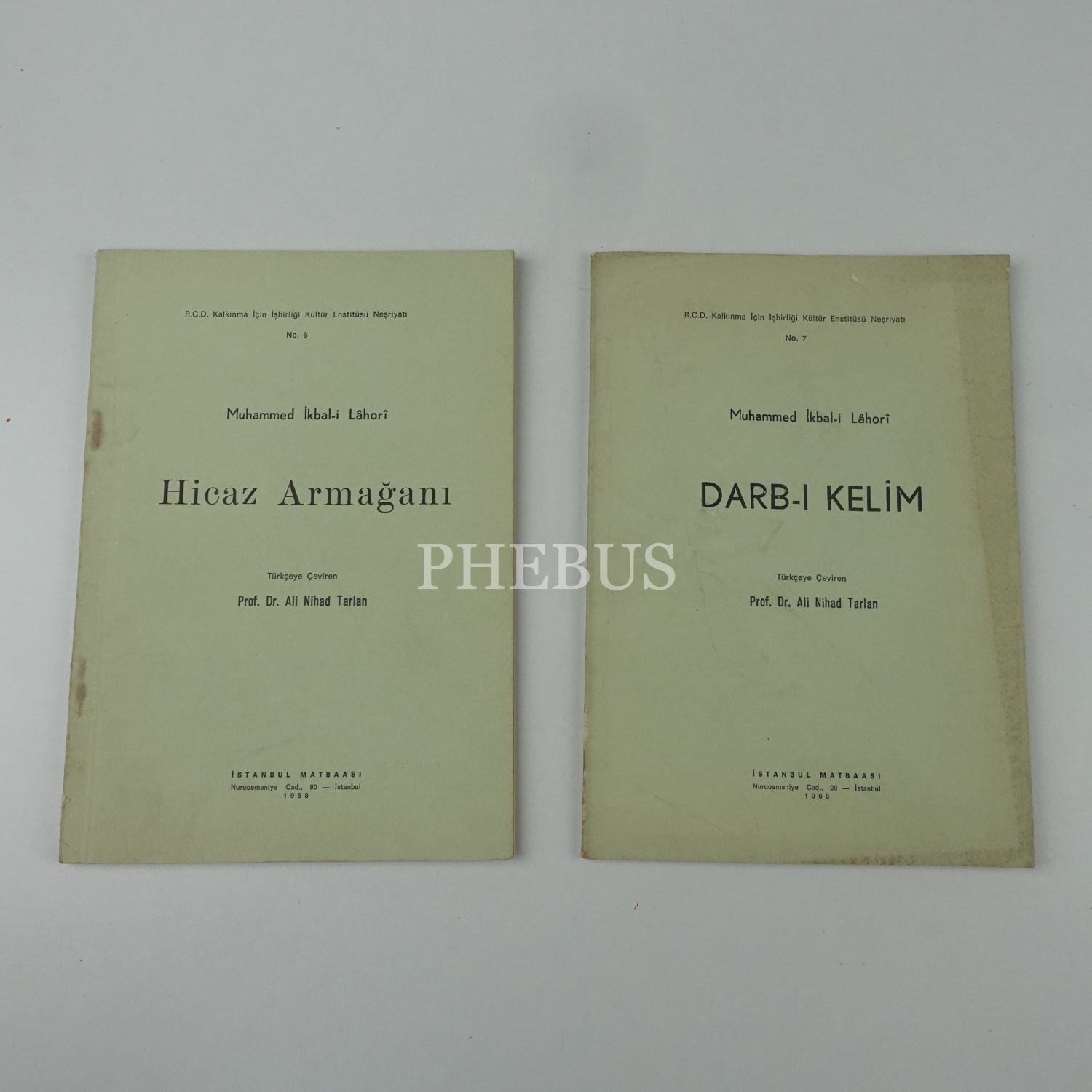 Muhammed İkbal-i Lâhorî´nin Ali Nihad Tarlan tarafından Türkçeye çevrilen iki eseri: 1) DARB-I KELÎM 2) HİCAZ ARMAĞANI, 1968, İstanbul Matbaası, 64+61 sayfa...