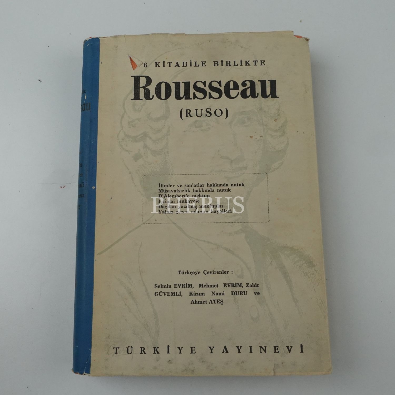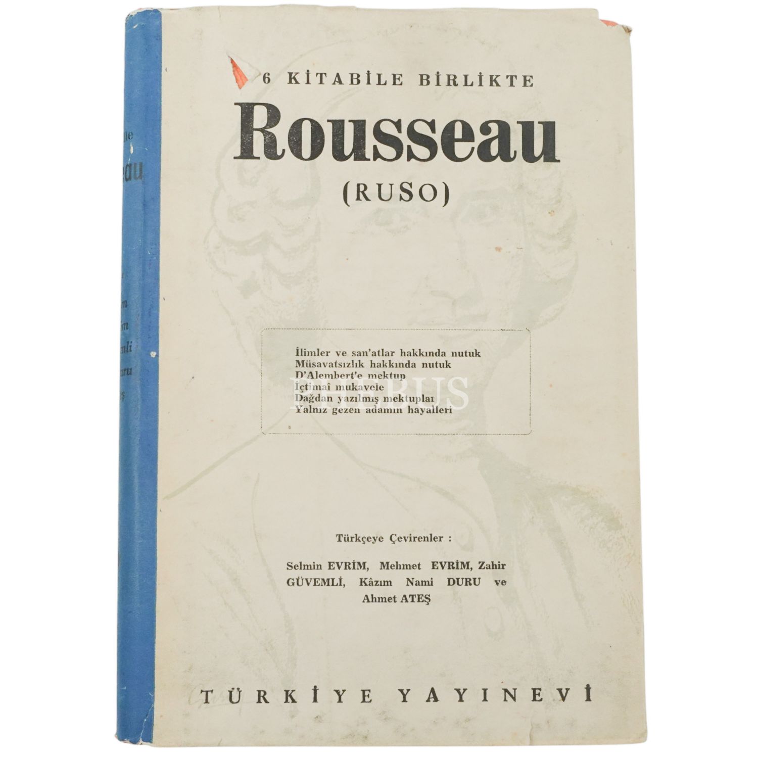 6 KİTABİLE BİRLİKTE ROUSSEAU (RUSO), (Türkçeye çevirenler: Selmin Evrim - Mehmet Evrim - Zahir Güvemli - Kâzım Nami Duru - Ahmet Ateş), 1960, Türkiye Yayınevi, 374 sayfa...