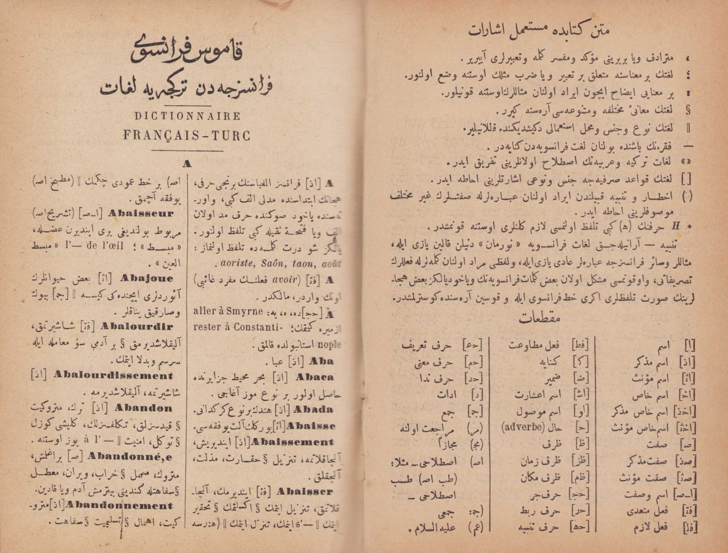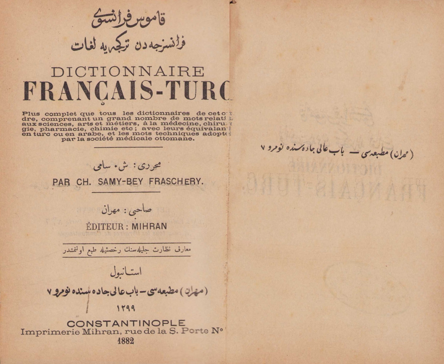Osmanlıca - Fransızca Kamus-ı Fransevi, Fransızcadan Türkçeye Lügat, Şemsettin Sami, Mihran Matbaası, İstanbul, 1299, 1640 sayfa, 12x17 cm
