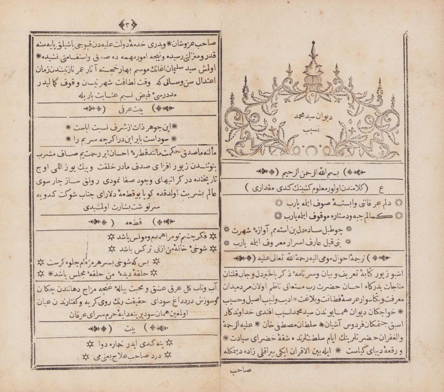 Osmanlıca Divan-ı Nesib, Seyyid Mehmed, Matbaa-i Amire, İstanbul, 1261, 68 sayfa, 13x20 cm