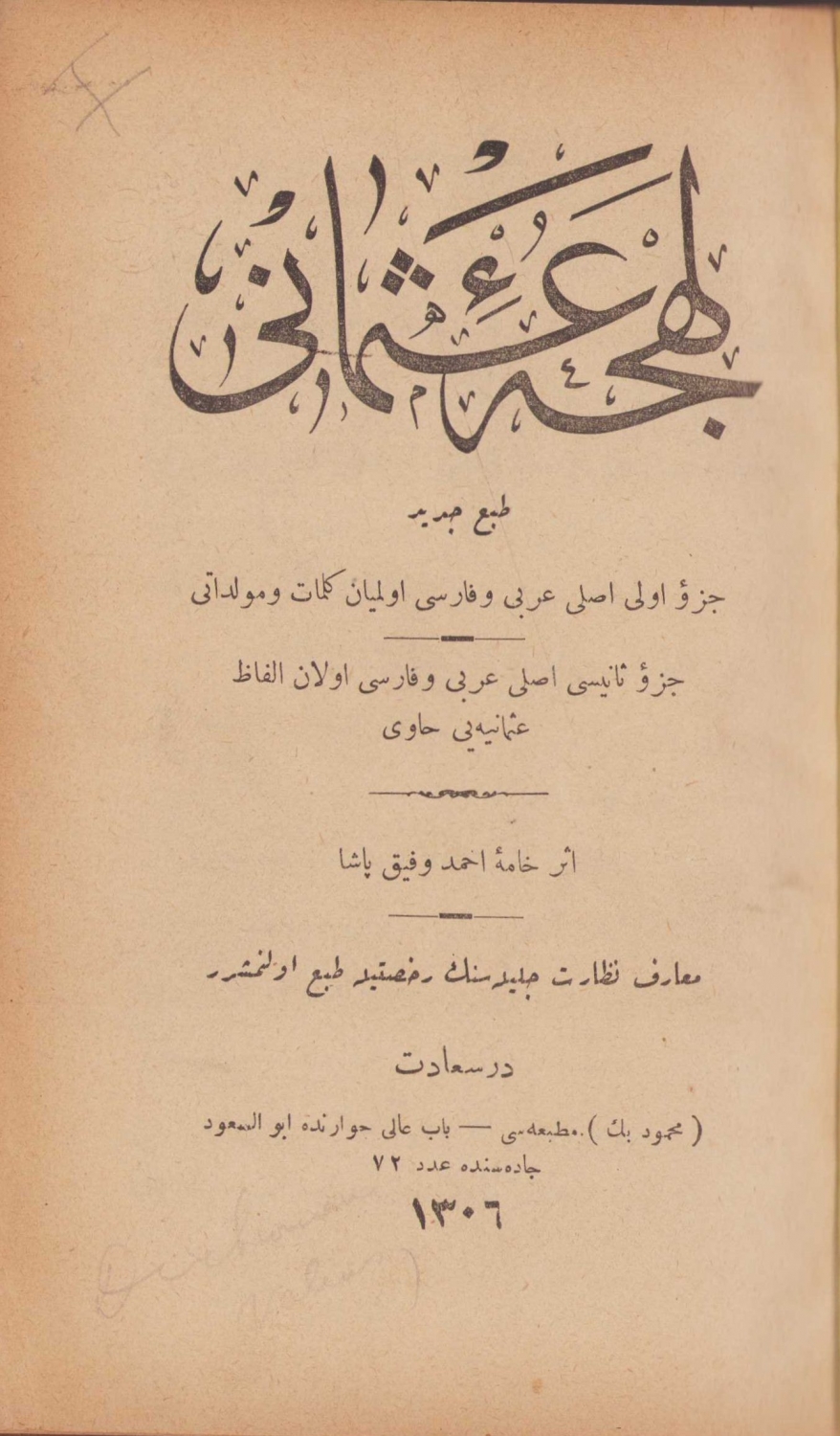 Osmanlıca Lehce-i Osmani, Ahmet Vefik Paşa, Mahmud Bey Matbaası, Dersaadet, 1307, 1455 sayfa, 13x20 cm, ÖZEGE; 11585
