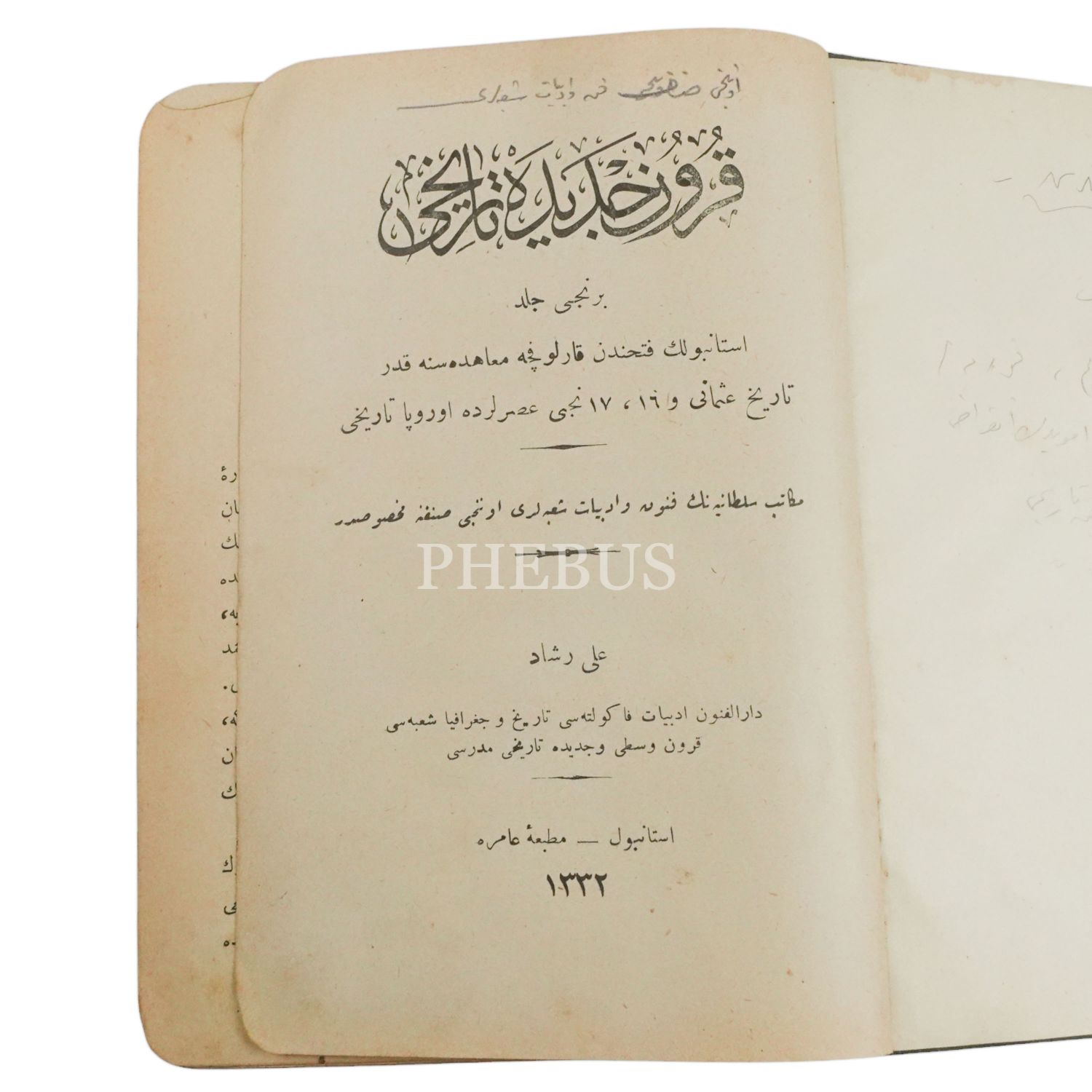 Darülfünun Edebiyat Fakültesi Tarih ve Coğrafya Fakültesi öğretmenlerinden Ali Reşad Efendi´nin Yakın Çağ´ı konu alan eseri...