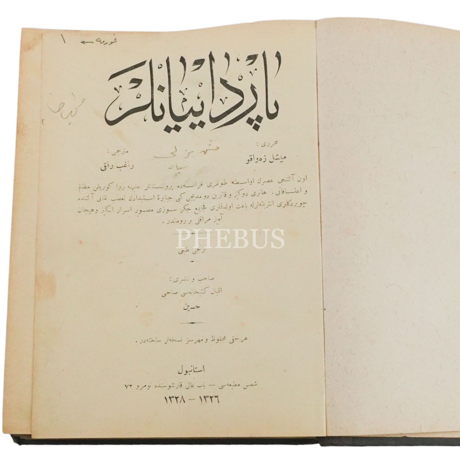 PARDAYANLAR, Michel Zevaco, (çeviren: Ragıp Rıfkı), 1328, Şems Matbaası, 549 sayfa, 18x25 cm...