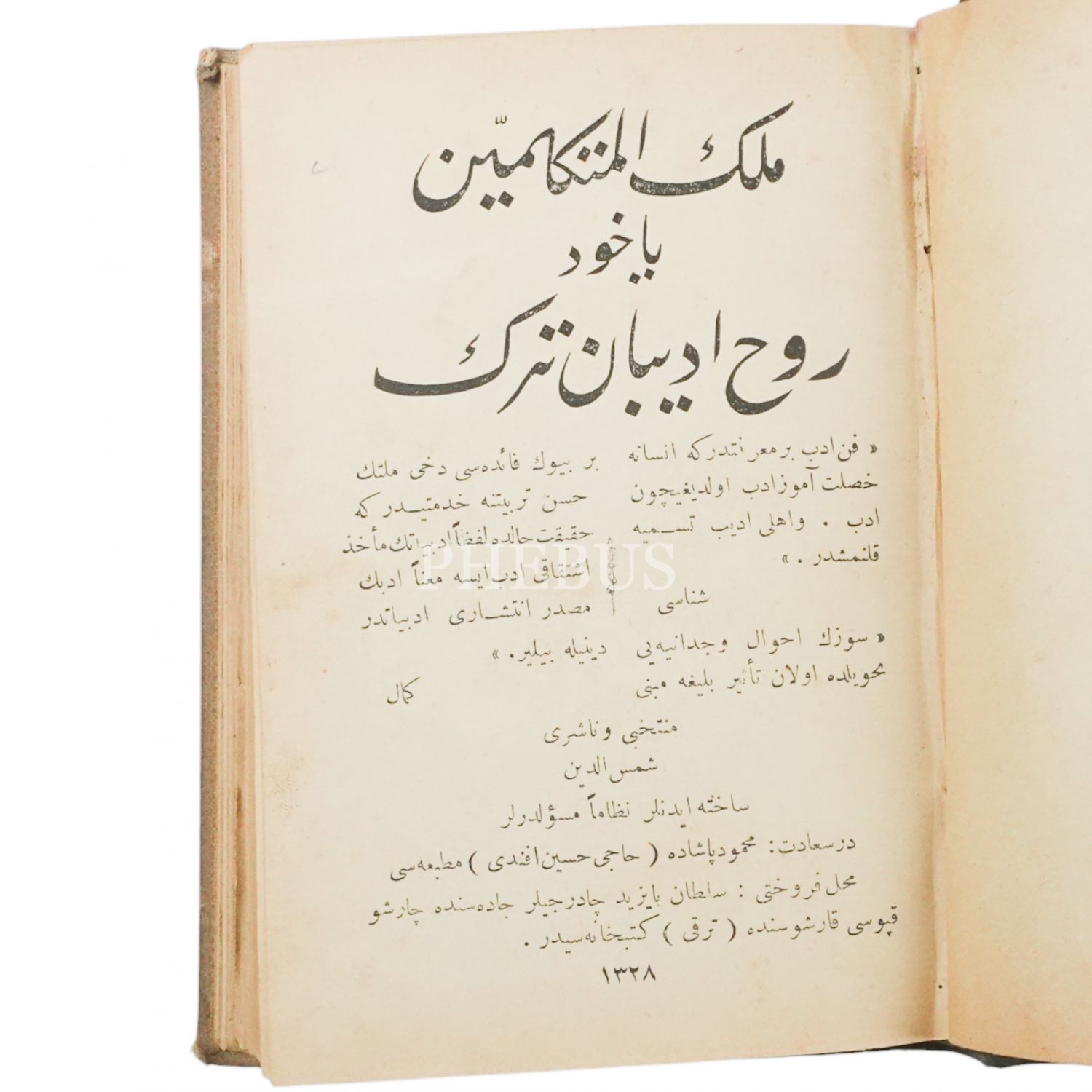 ŞEHİD´ÜL-HAK ZEKİ BEY, Baha Said, 1329, Hikmet Matbaa-i İslamiyesi, 80 sayfa, MELEKÜ´L-MÜTEKELLİMİN YAHUD RUH-I EDİBAN-I TÜRKÎ, (çeviren: Şemseddin), 1328, Hacı Hüseyin Efendi Matbaası, 304 sayfa, 12x18 cm...