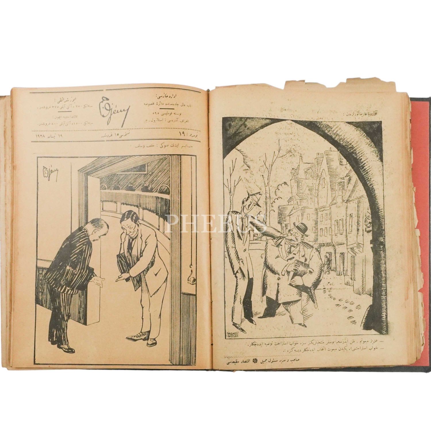 CEM dergisi, Cemil Cem´e "Türk karikatürün babası" unvanını kazandıran 1910 senesinde çıkarılmaya başlanan ve 1912 senesine kadar devam eden hayatının ardından 1927 senesine kadar bir suskunluk devresine girmiştir. Satışa sunduğumuz bu cilt, 1927 senesinde tekrar yayın hayatına dönen CEM dergisinin bu ikinci döneminde yayımlanan ilk 3 sayısı ve 9´dan başlayarak 20´ye kadar olan sayılarını içermektedir. *Bazı sayfalar sırttan ayrılmış ve sayfa kenarları yıpranmıştır.