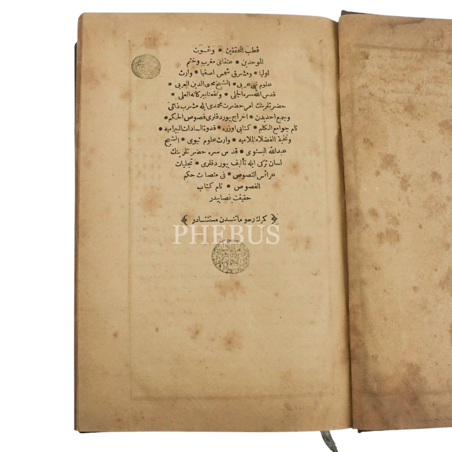 TERCÜME-İ FÜSUS, Muhiddin Ebu Abdullah Muhammed ibn Ali el-Arabî, (Çeviren: Bosnalı Abdullah), 1. cilt, 1290, Matbaa-i Amire, 651 sayfa, 16x24 cm...