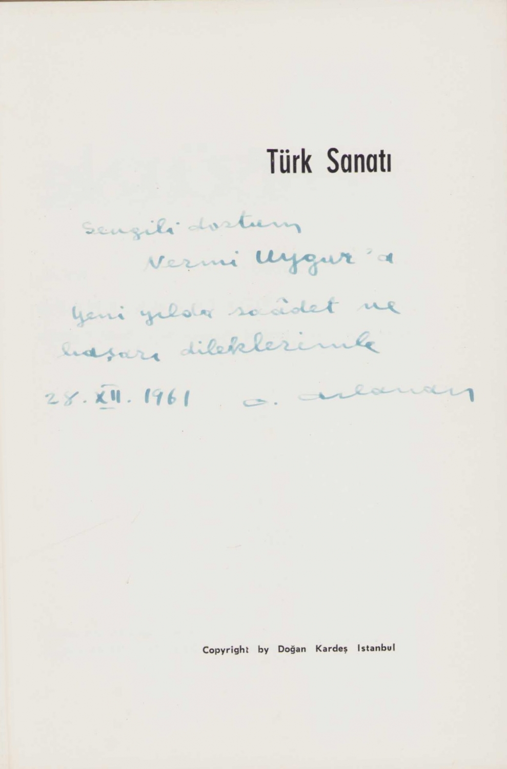 Türk Sanatı, Oktay Aslanapa, İstanbul, yazarından ithaflı ve imzalı, 147 sayfa, 11x15 cm