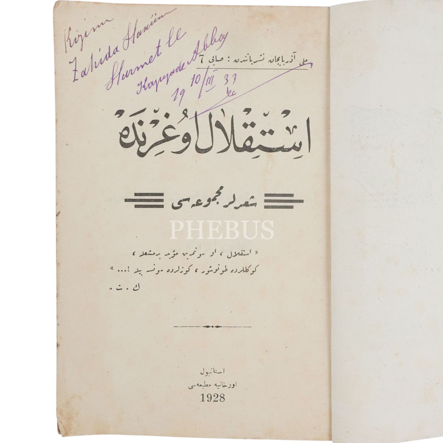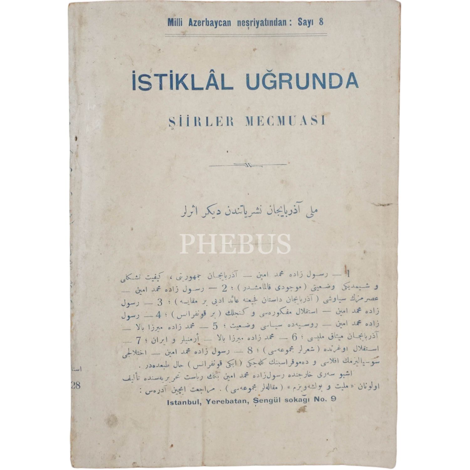 İSTİKLAL UĞRUNDA ŞİİRLER MECMUASI, (toplayan: Kemal), 1928, Milli Azerbaycan Neşriyatı, 166 sayfa, 14x20 cm...