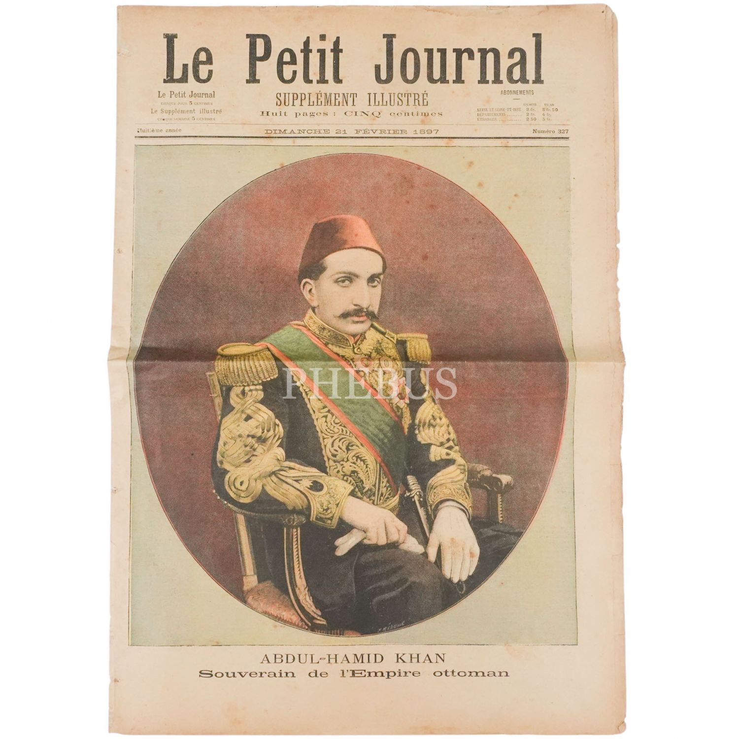 Sultan II. Abdülhamid kapaklı LE PETIT JOURNAL gazetesinin 21 Şubat 1897 tarihli 327. sayısı, 31x44 cm...