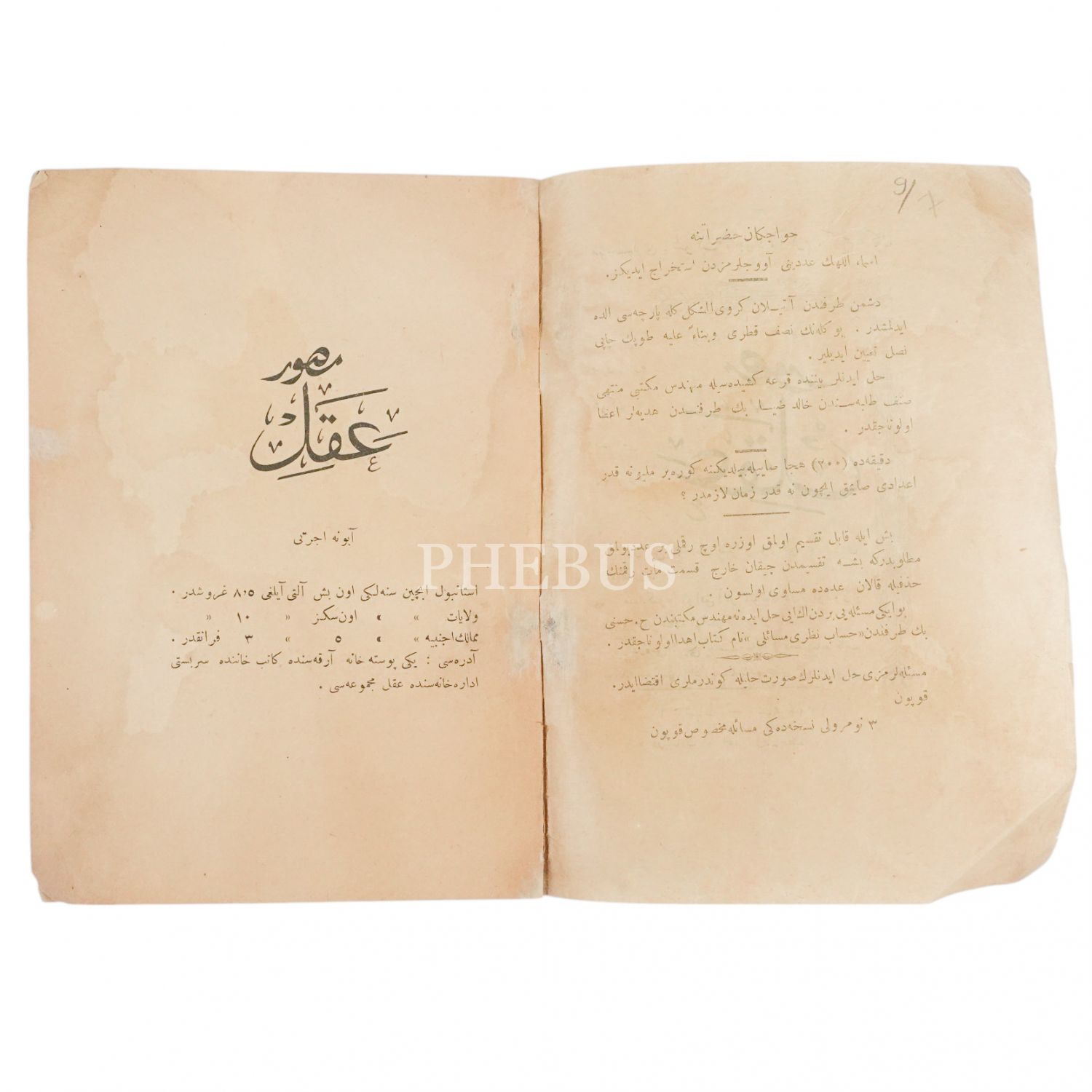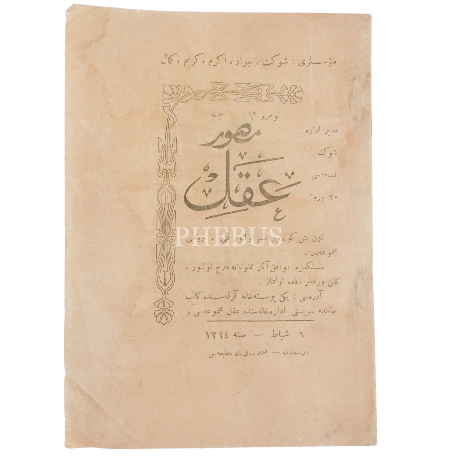 İç sayfalarında Sultan İkinci Abdülhamid´in tasvir edildiği bir karikatüre yer verilen, Şevket, Cevad, Ekrem, Kerim, Kemal isimleri adı altında çıkarılan MUSAVVER AKIL dergisinin 6 Şubat 1324 (19 Şubat 1909) tarihli 3. sayısı, 14x21 cm...