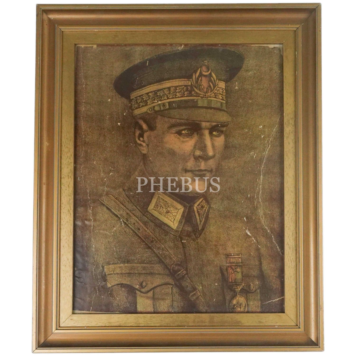 Mareşal üniformalı Mustafa Kemal Atatürk görselli taş baskı afiş, afiş 34x44 cm, çerçeve 46x56 cm...