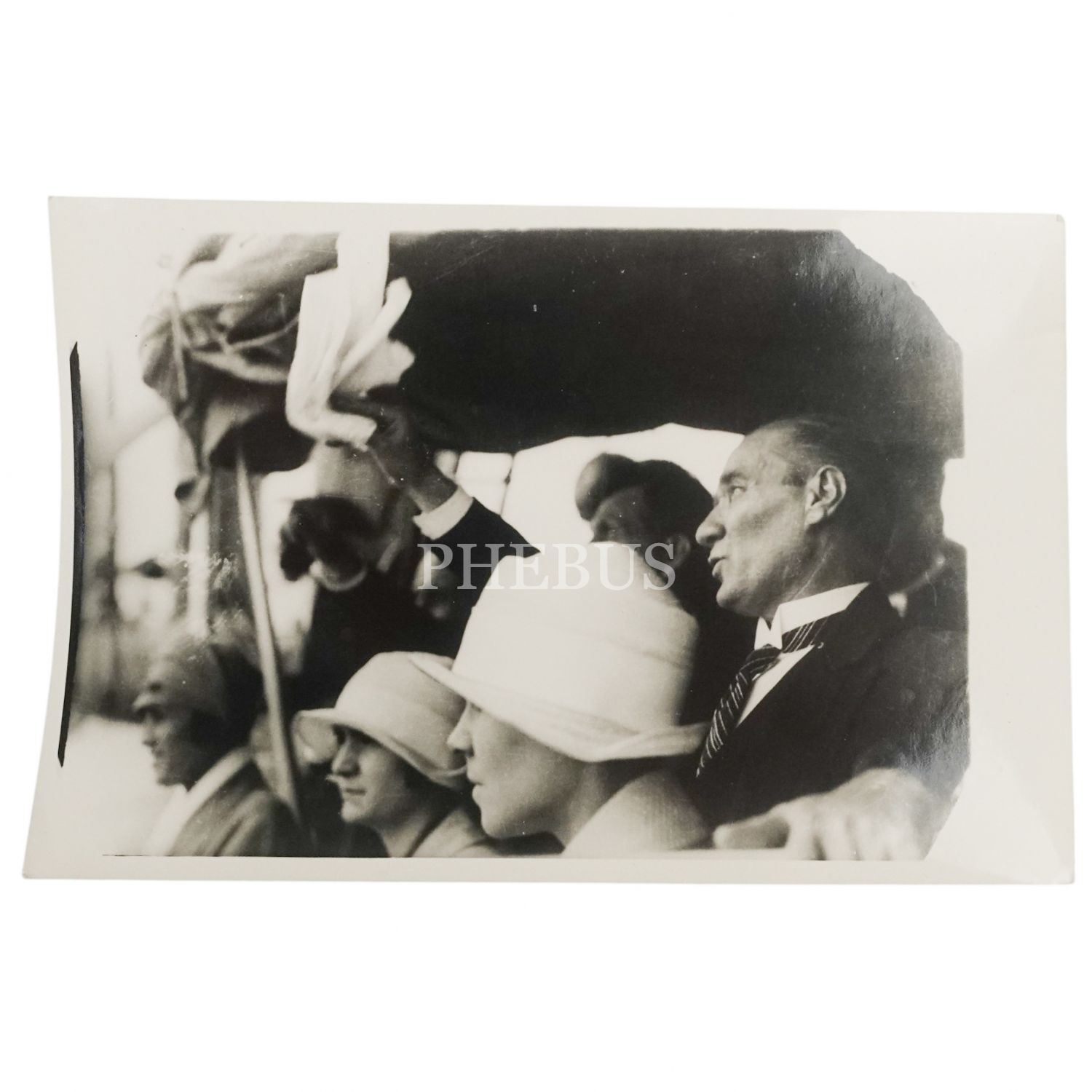 Cumhuriyet döneminde İstanbul’a ilk ziyaretini ancak 1927 yılında gerçekleştirebilen Mustafa Kemal Atatürk, Ertuğrul Yatı ile şehre girerken kendisini karşılayan İstanbulluları beyaz mendiliyle selamlıyor, 1 Temmuz 1927, "Salâhaddin Giz" damgalı, 18x12 cm...