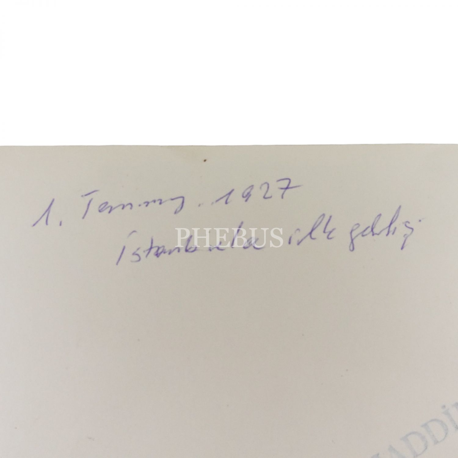 Fotoğrafın arka yüzüne "1 Temmuz 1927 İstanbula ilk geliş." notu düşülmüştür.