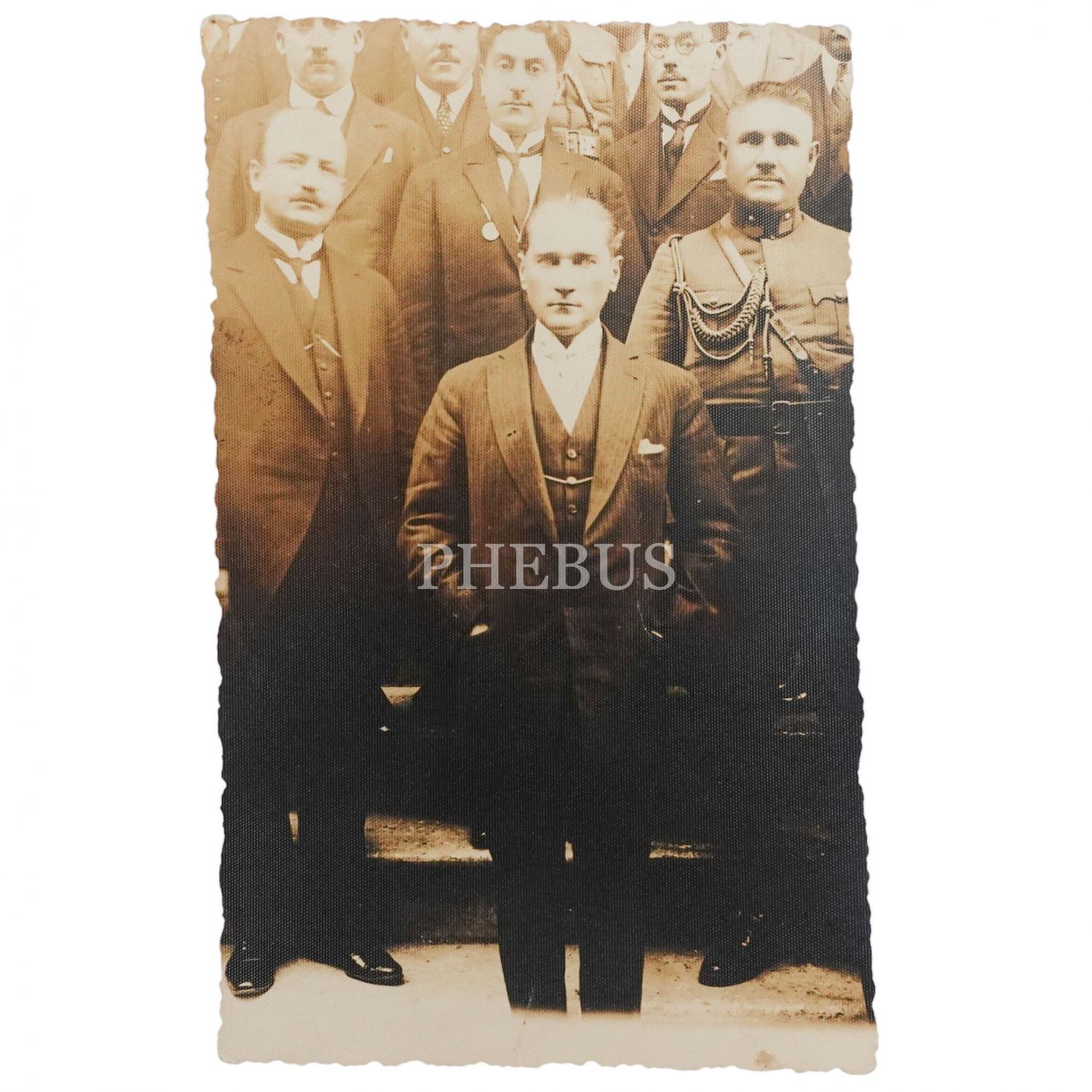 Mustafa Kemal Atatürk´ün, şeref konuğu olarak aralarında bulunduğu bir toplulukla birlikte çekilmiş hatıra fotoğrafı, 9x14 cm...