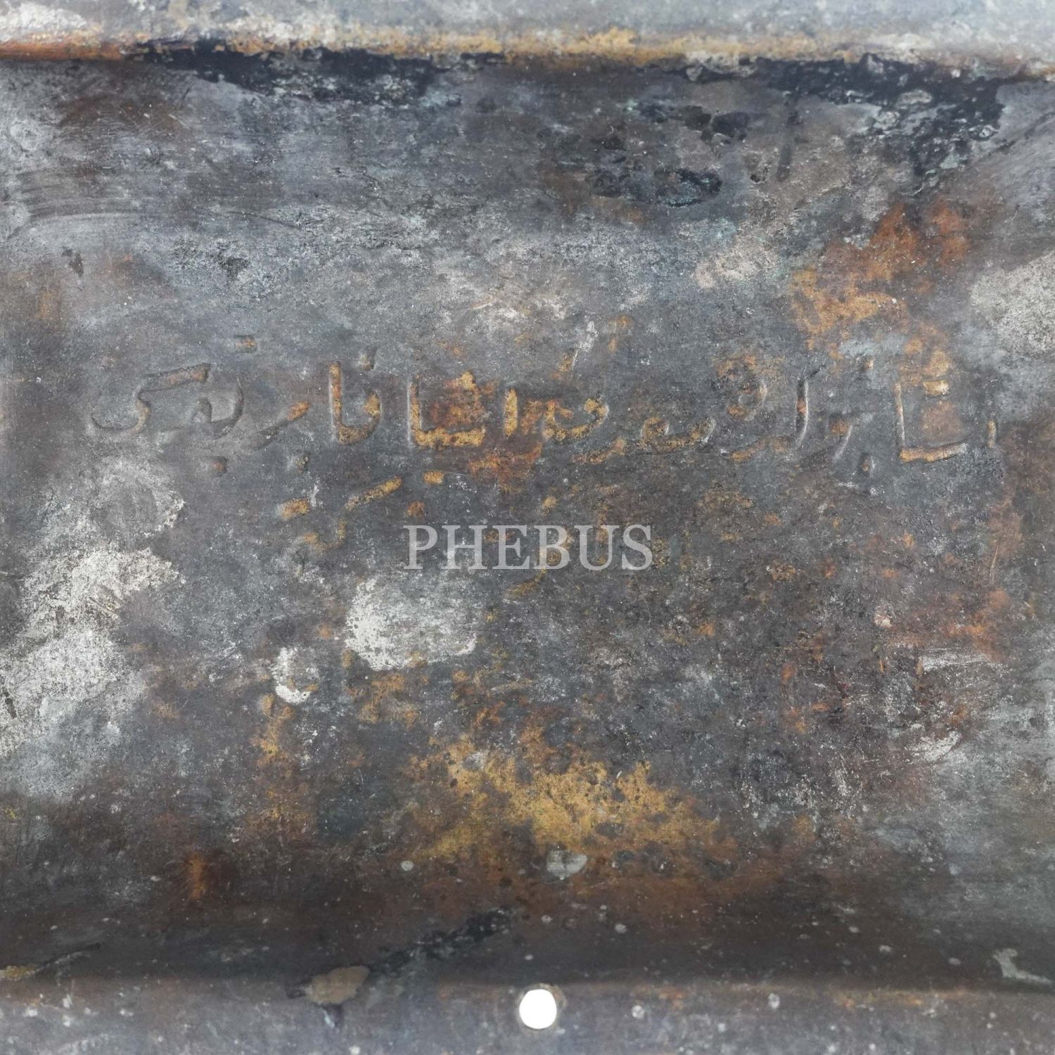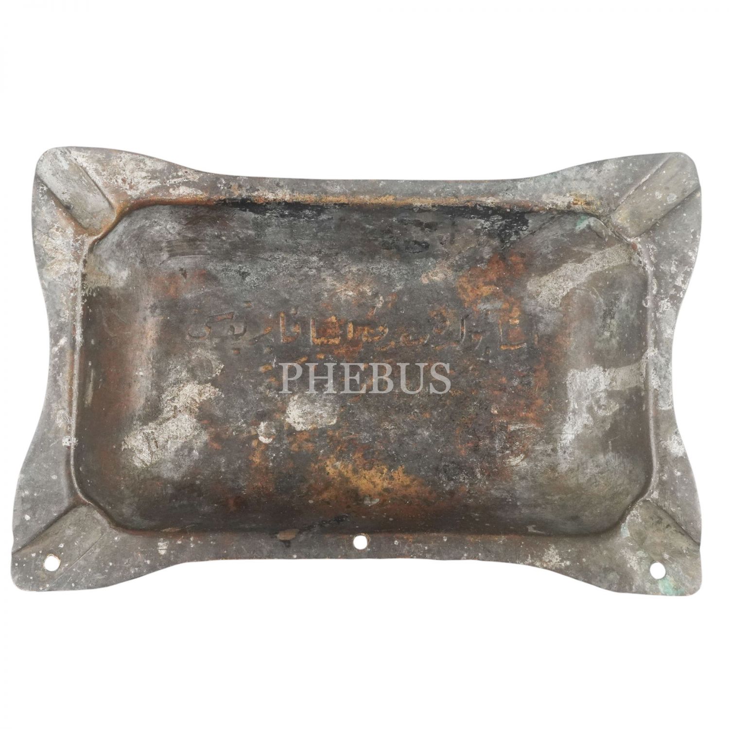 İç kısmı Osmanlıca kabartma ´´İstanbul Madeni̇ Eşya Fabri̇kası Türk Anoni̇m Şi̇rketi̇ - Zi̇ya Paşa Yokuşu İsmet Paşa Caddesi̇´´ yazılı pirinç küllük, 19x12x4 cm...